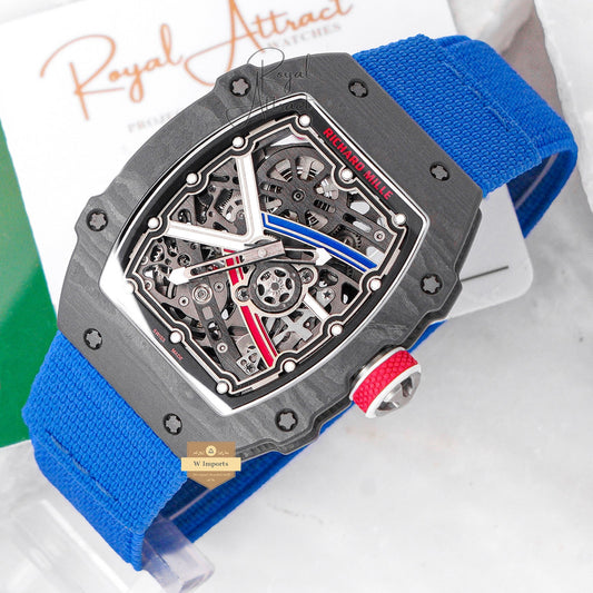 New Elite Class Carbonic Case With Skeletion Dial Blue Strap