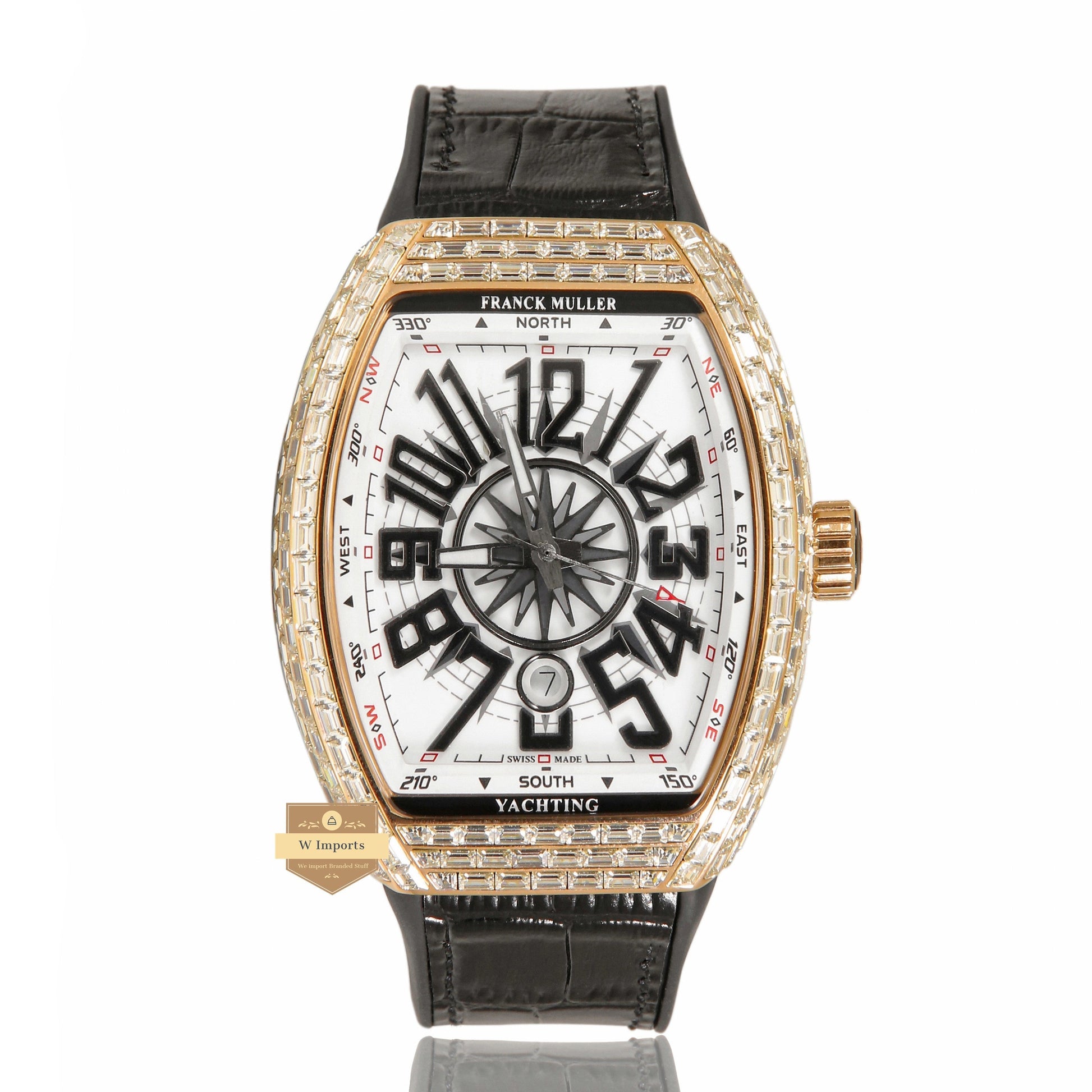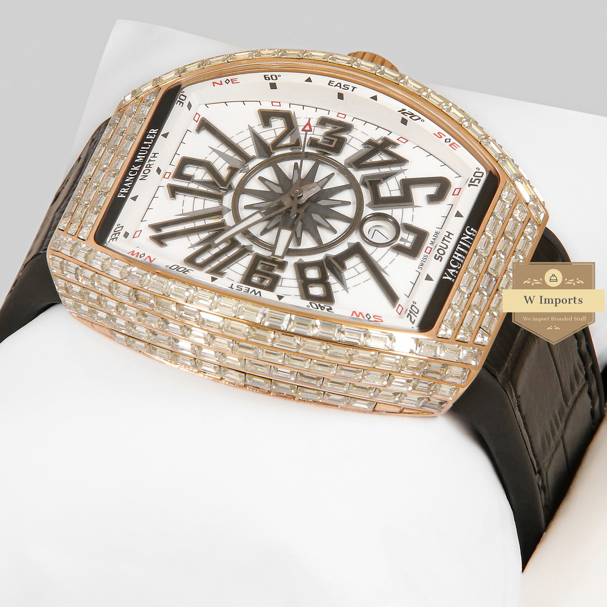 LATEST COLLECTION ROSE GOLD STONE CASE WITH WHITE DIAL AND BLACK PVC STRAP