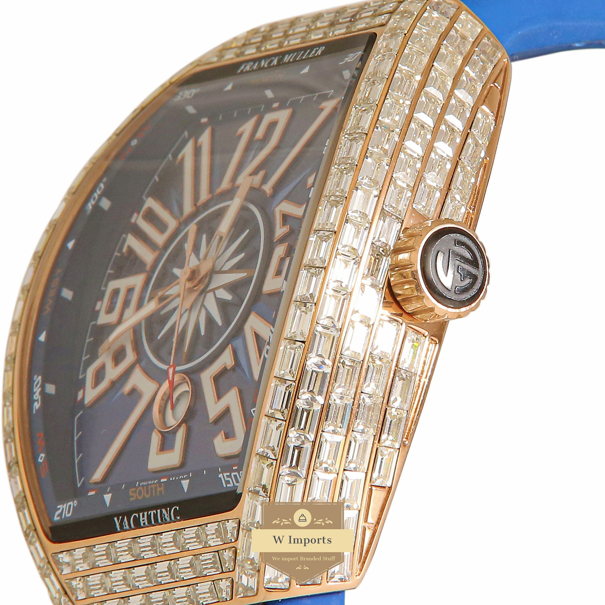 LATEST COLLECTION ROSE GOLD STONE CASE WITH BLUE DIAL AND PVC STRAP