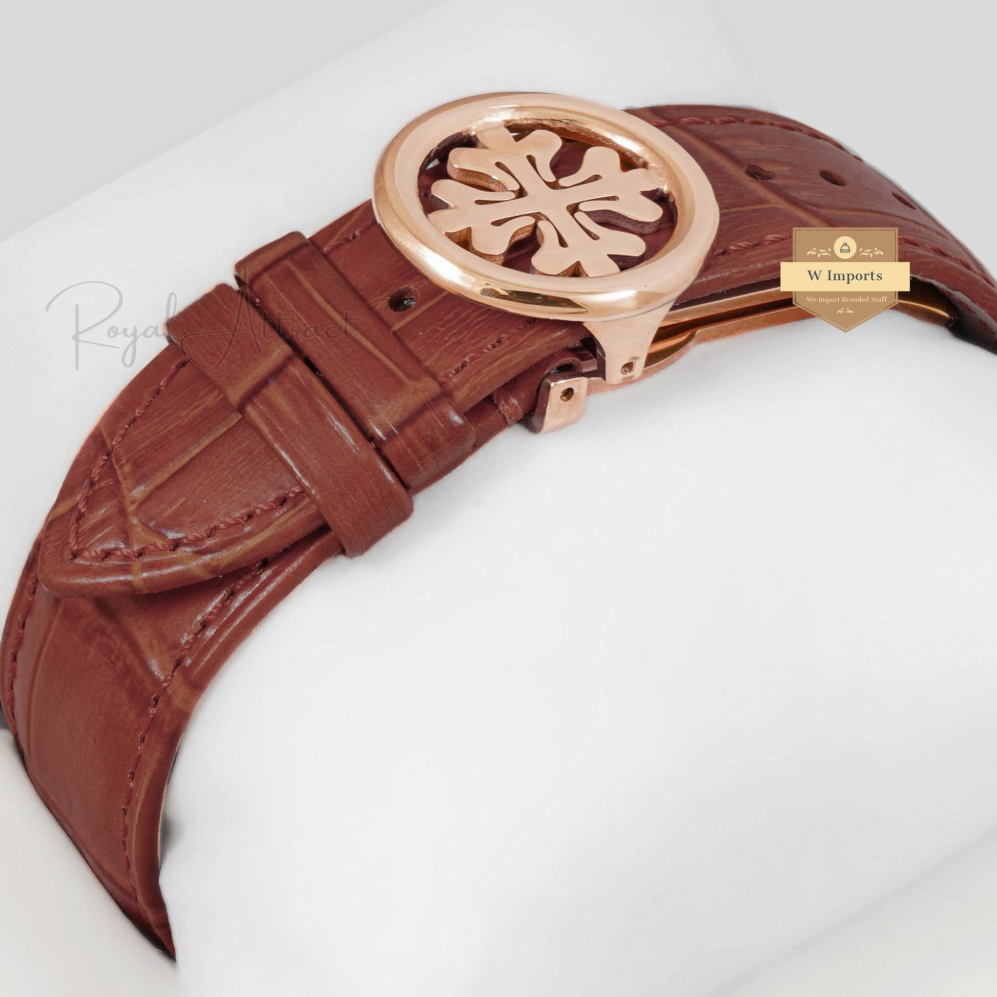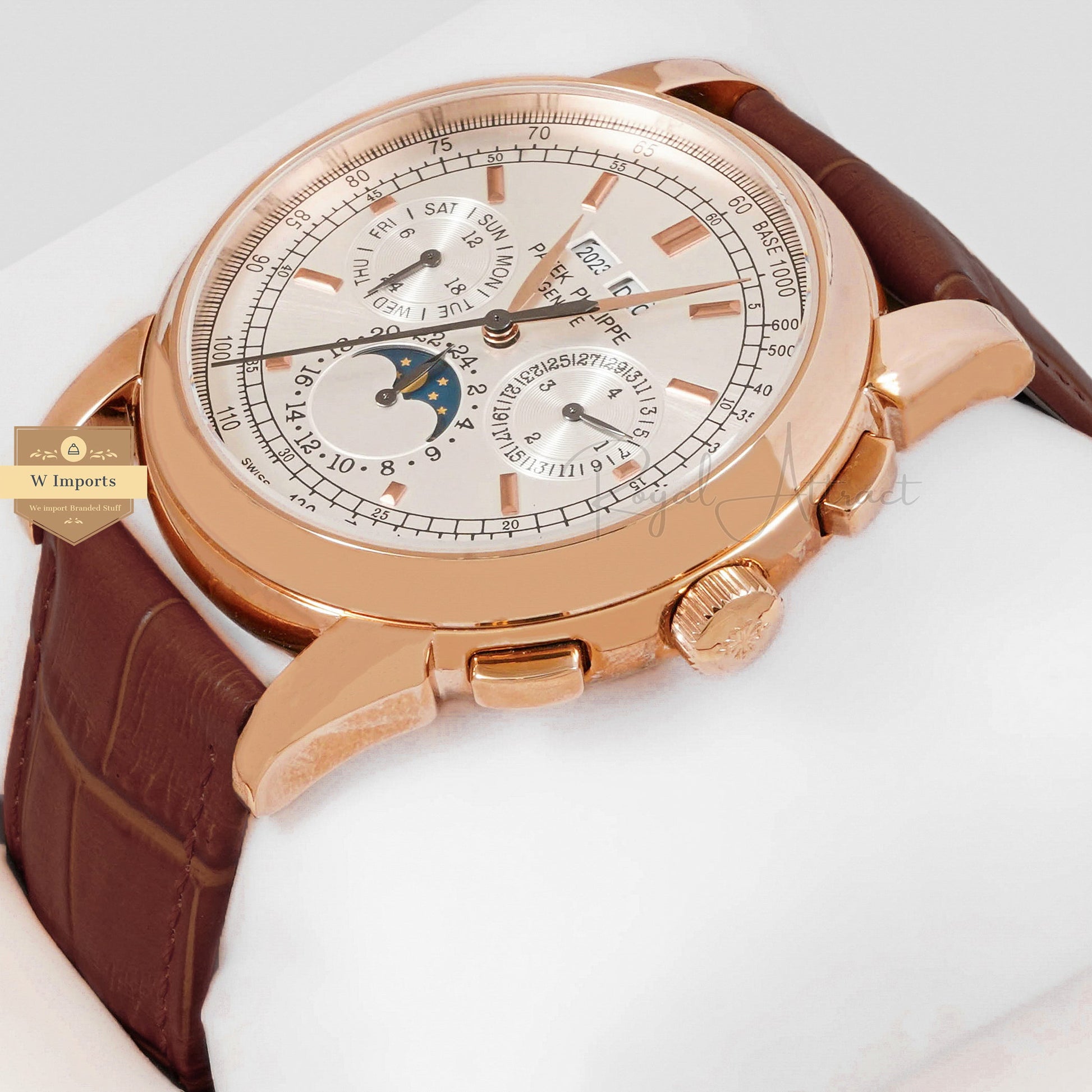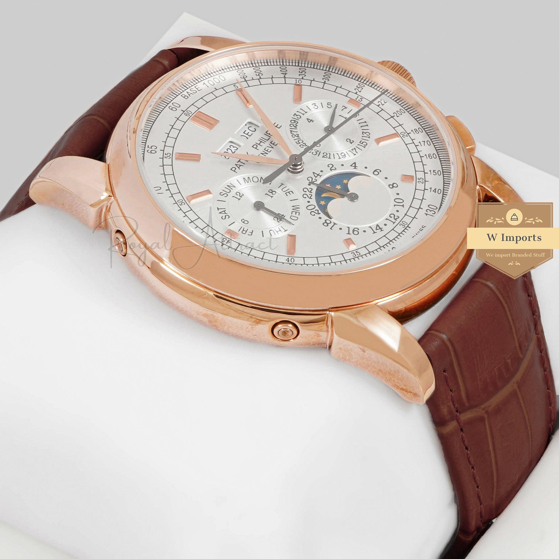 LATEST COLLECTION MOON PHASE ROSE GOLD CASE WITH SILVER DIAL & BROWN LEATHER STRAP