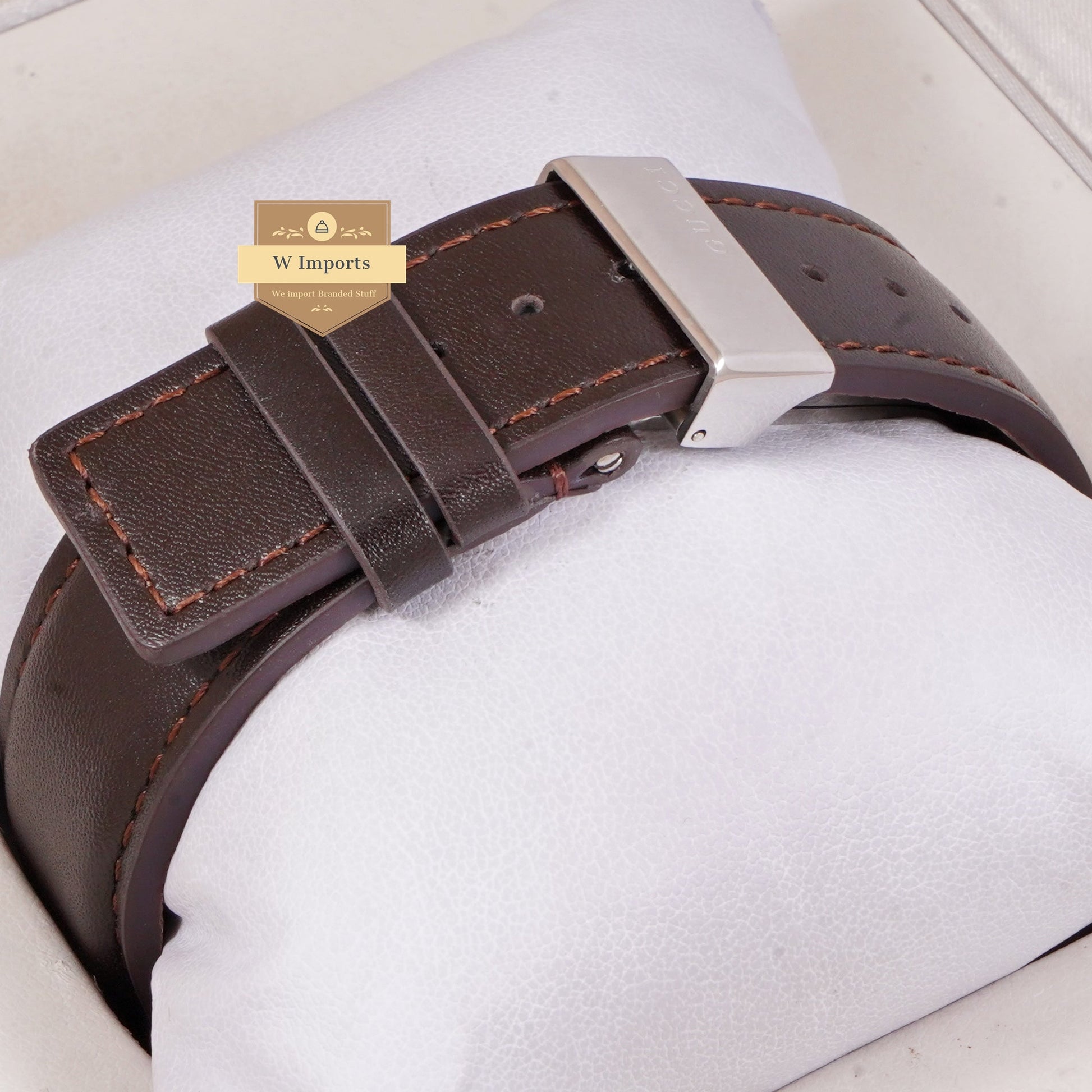 LATEST COLLECTION CHRONOGRAPH SILVER CASE WITH WHITE DIAL & BROWN LEATHER STRAP