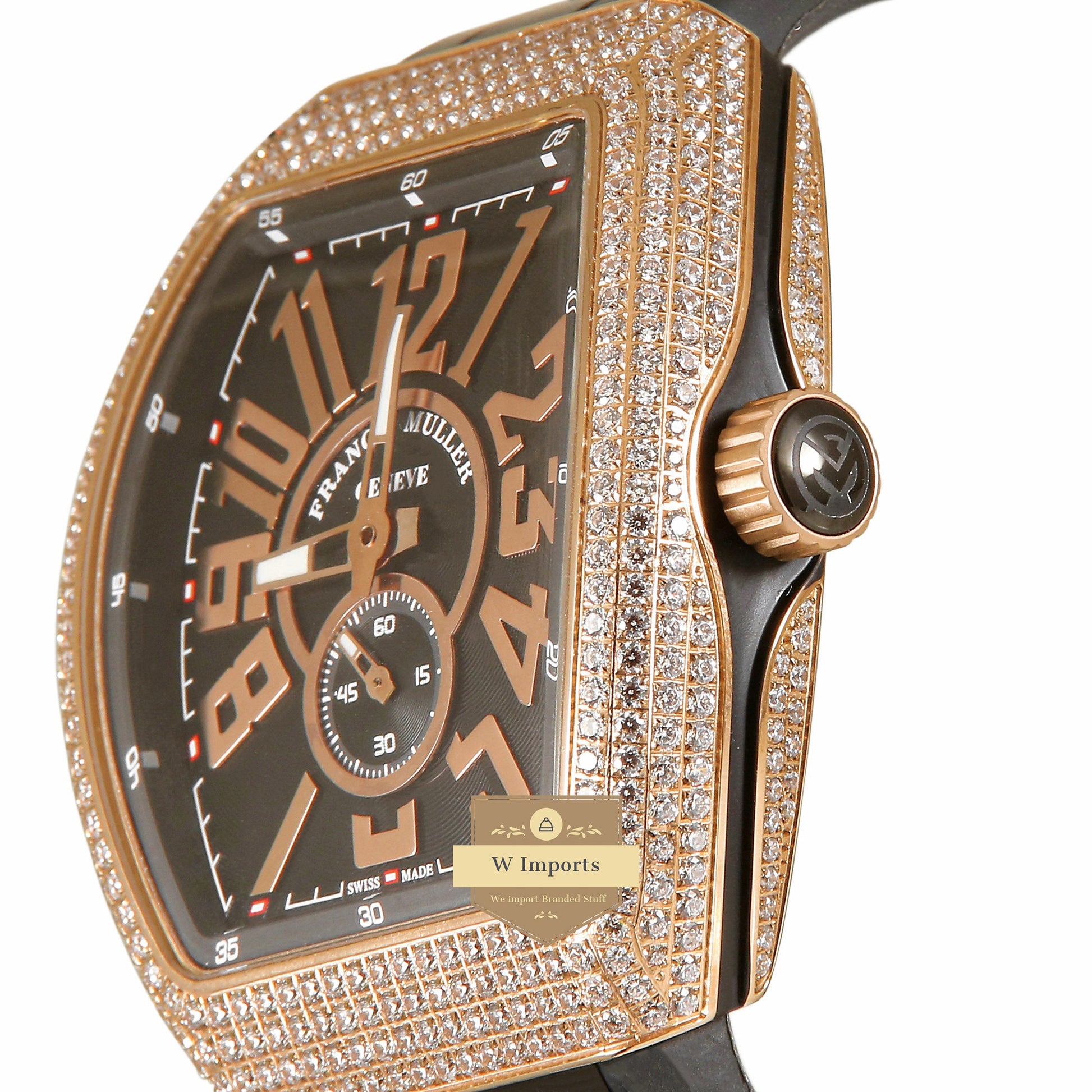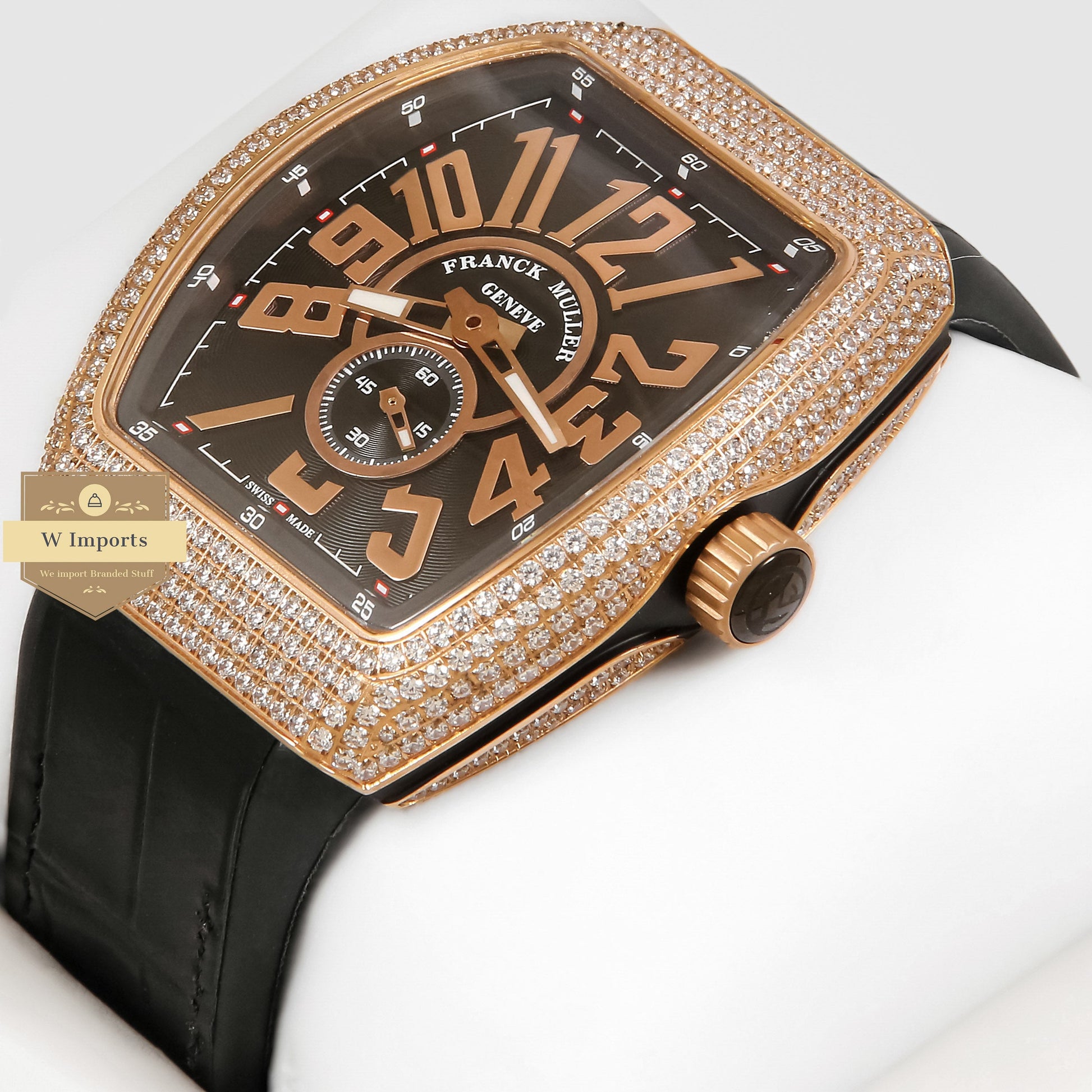 LATEST COLLECTION ROSE GOLD STONE CASE WITH BLACK DIAL AND PVC STRAP