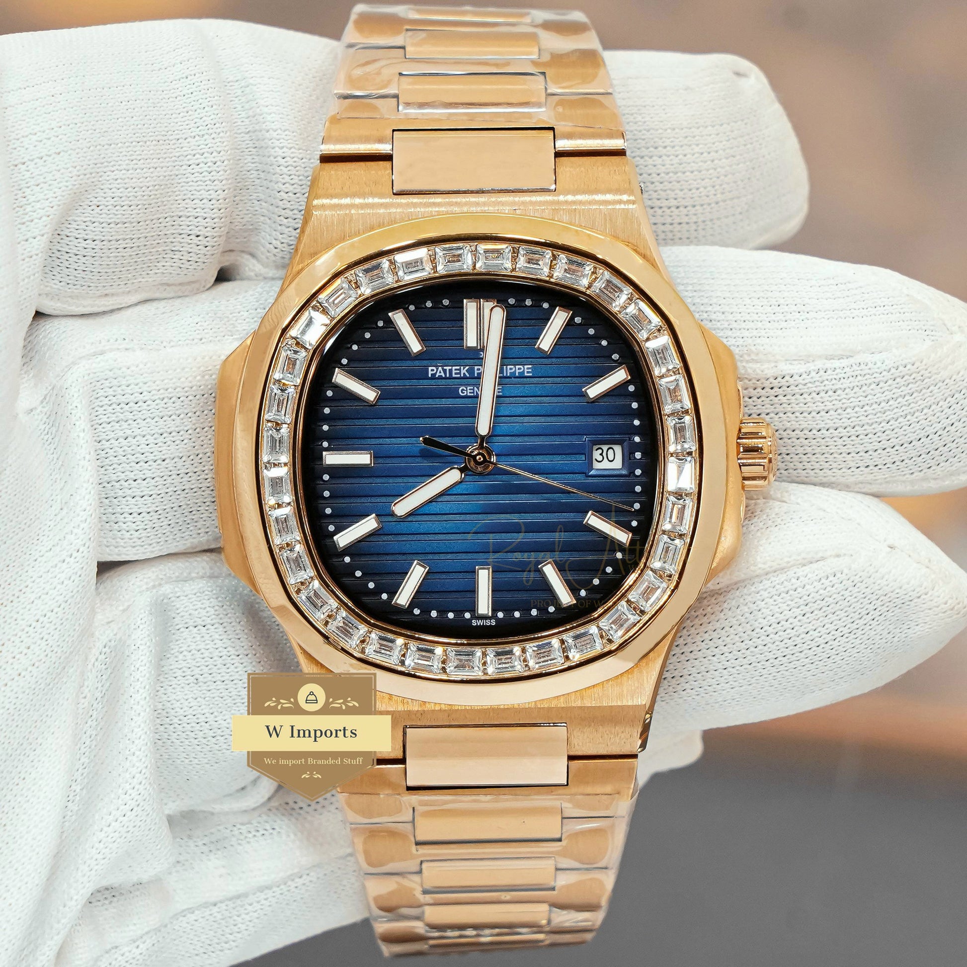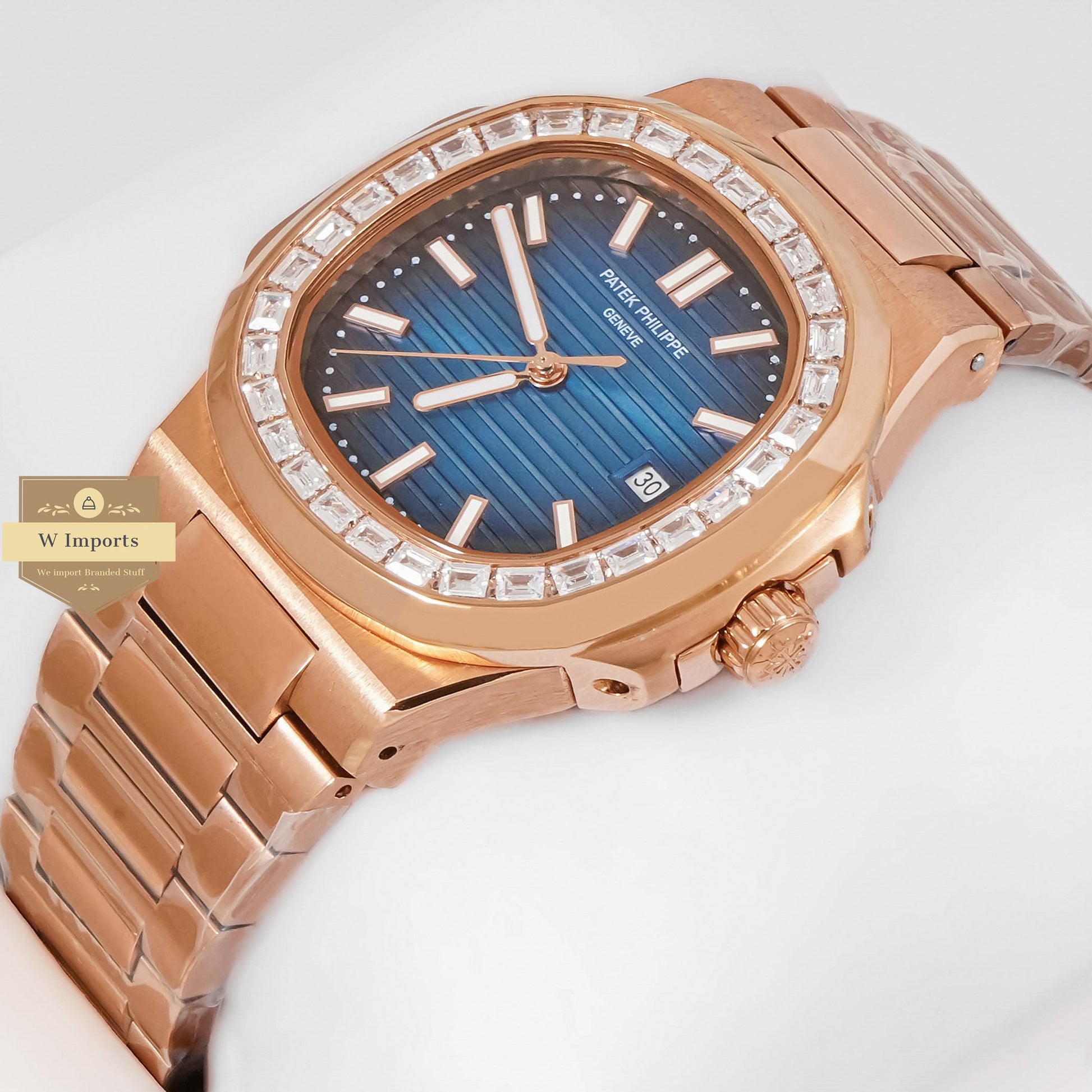 LATEST COLLECTION ROSE GOLD WITH BLUE DIAL STONE BEZEL AUTOMATIC WATCH