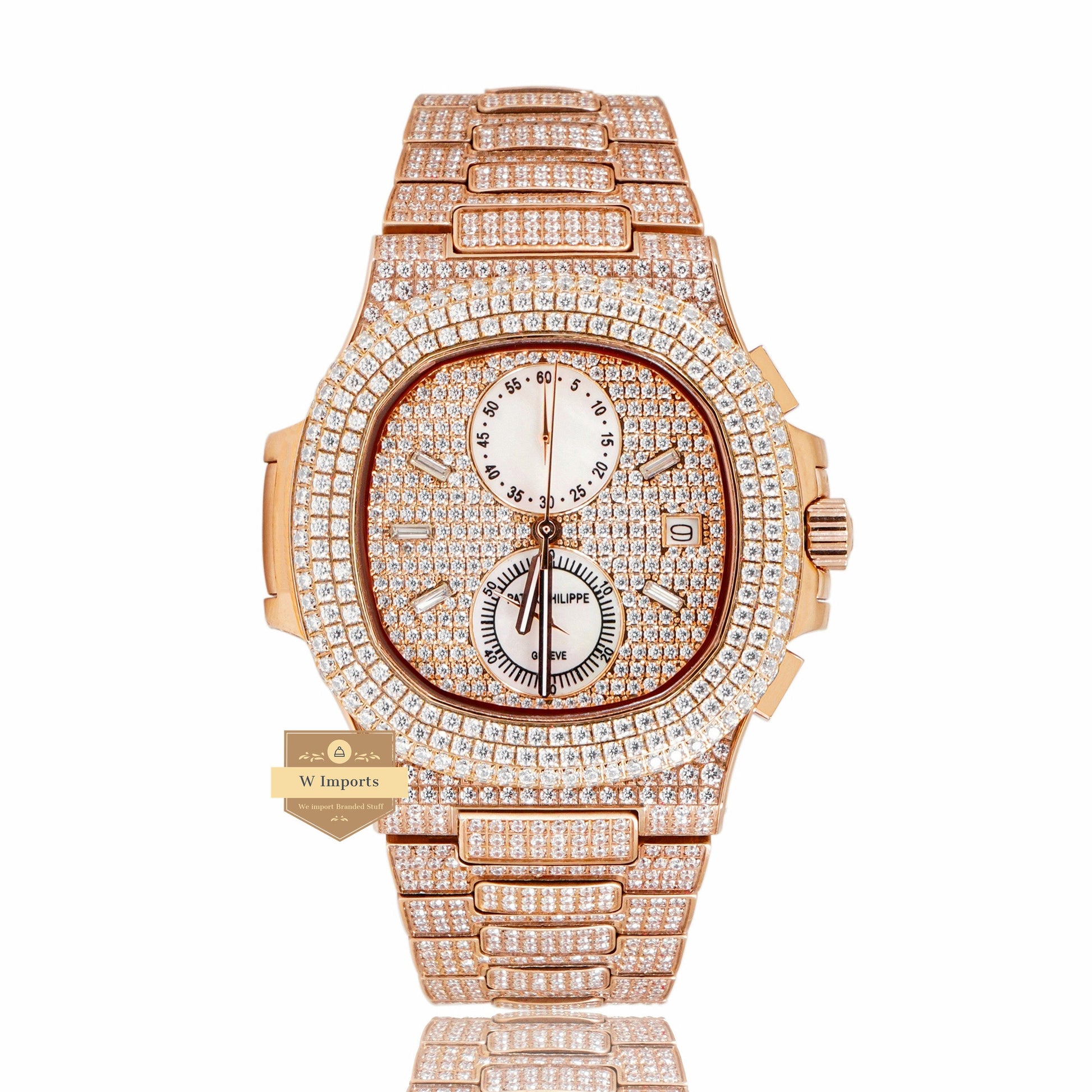 LATEST COLLECTION CHRONOGRAPH ALL ROSE GOLD STONE WATCH