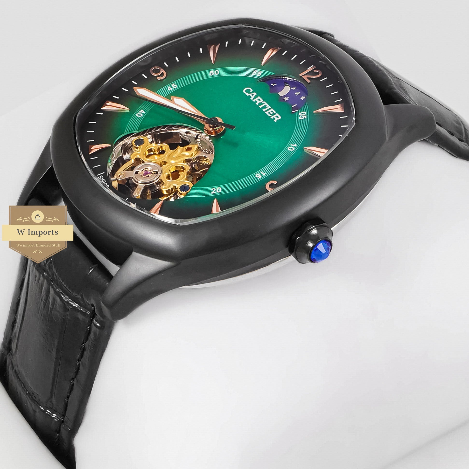 LATEST COLLECTION TOURBILLON BLACK MATT CASE WITH GREEN DIAL & LEATHER STRAP