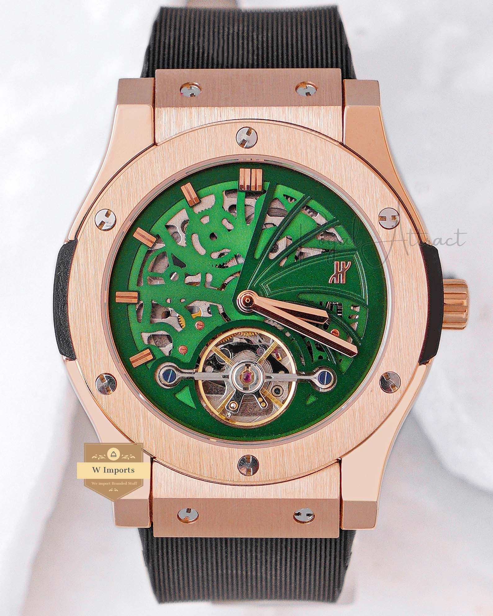 Latest Collection Tourbillon Rose Gold Case With Green Skeleton Dial Automatic watch