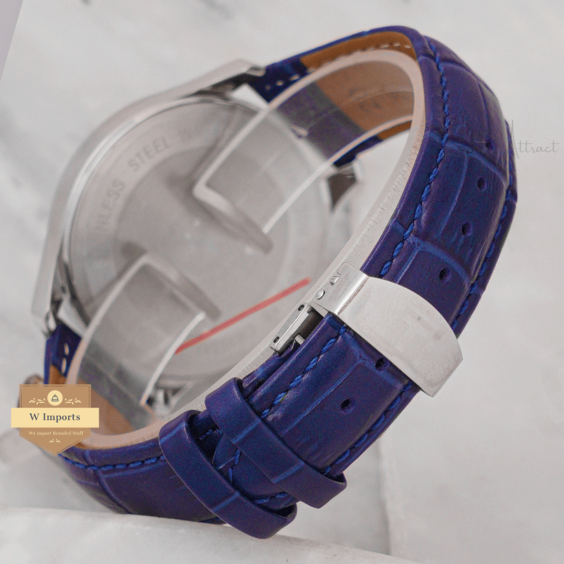 Latest Collection Silver Case With Blue Dial & Leather Strap