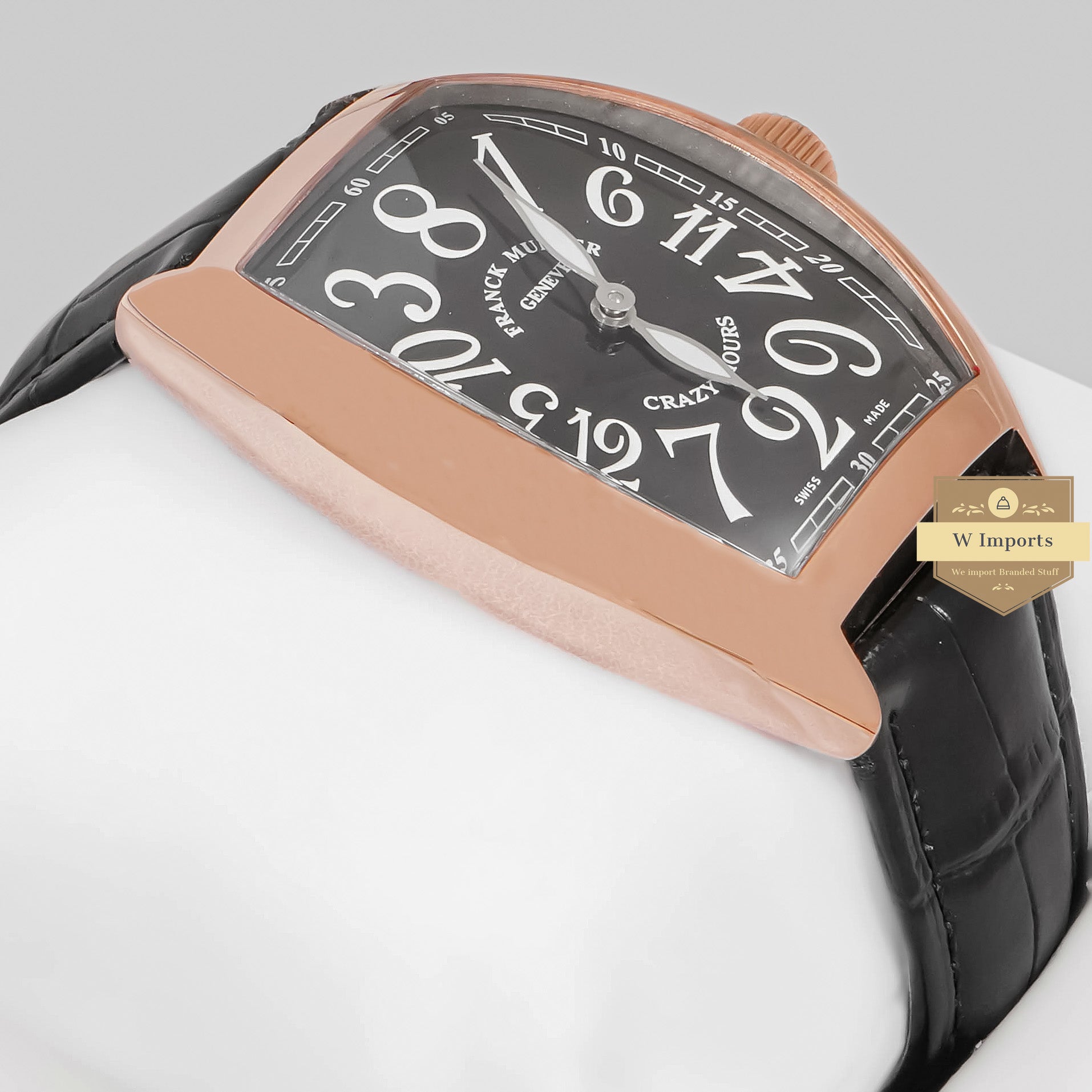LATEST COLLECTION CRAZY ROSE GOLD CASE WITH BLACK DIAL AND LEATHER STRAP