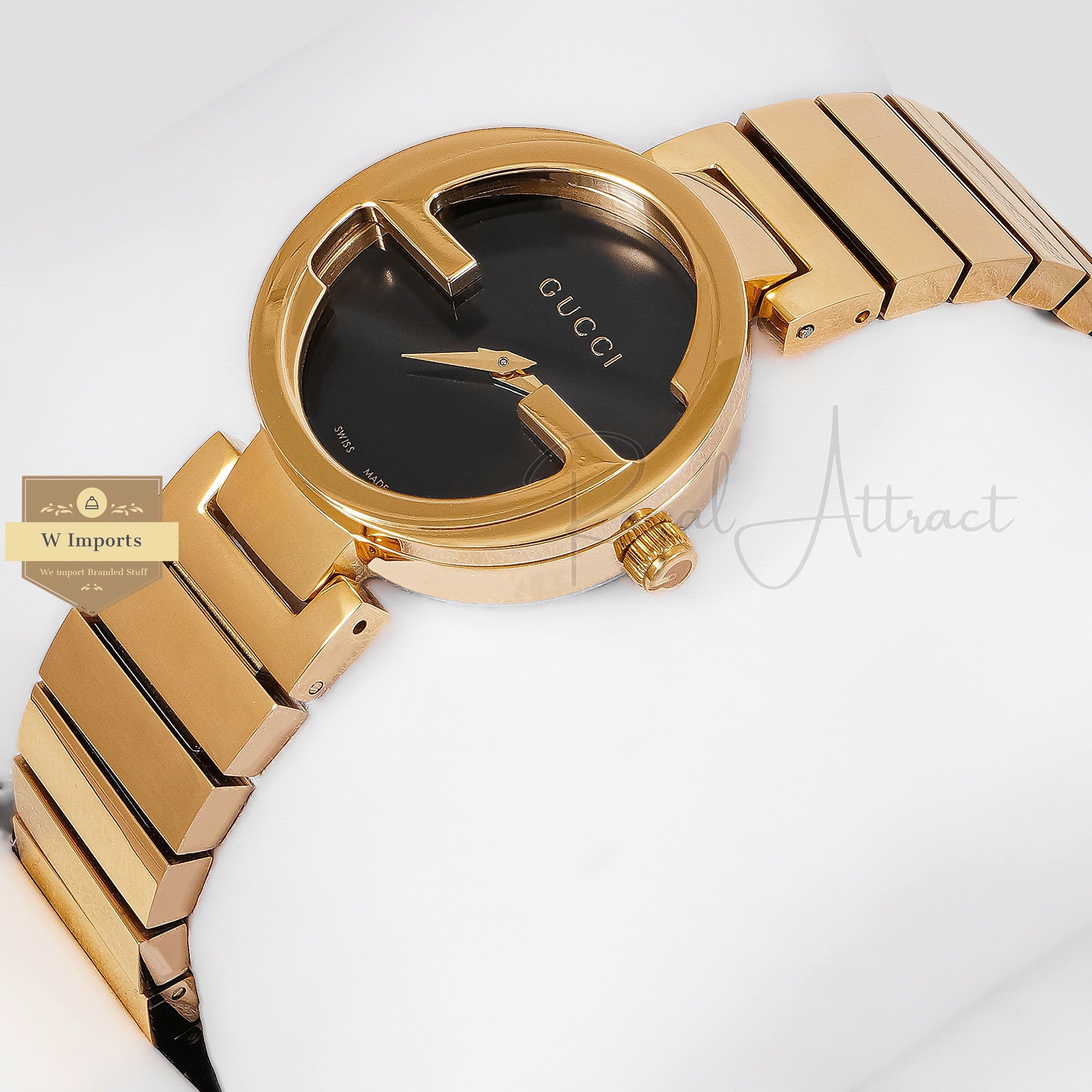 LATEST COLLECTION G YELLOW GOLD WITH BLACK PLAIN DIAL LADIES WATCH