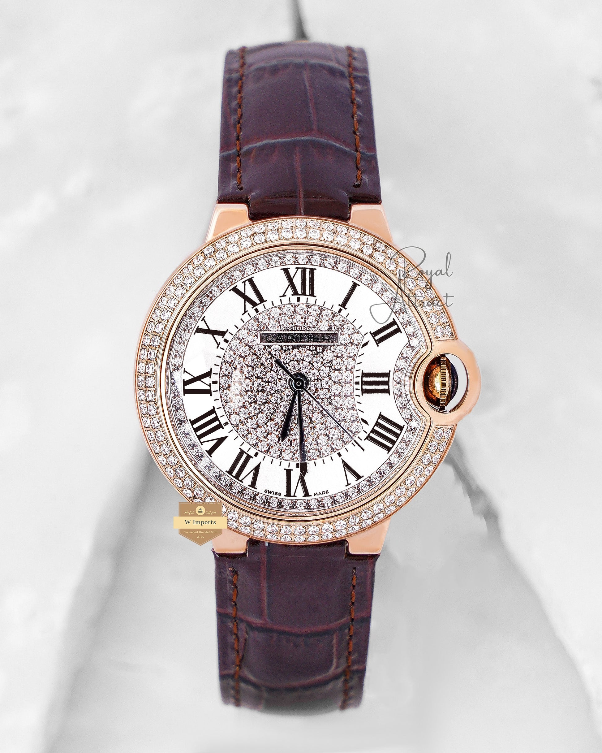 Latest Collection Ballon blew Rose Gold Case With White Stone Dial & Leather Strap Ladies Watch
