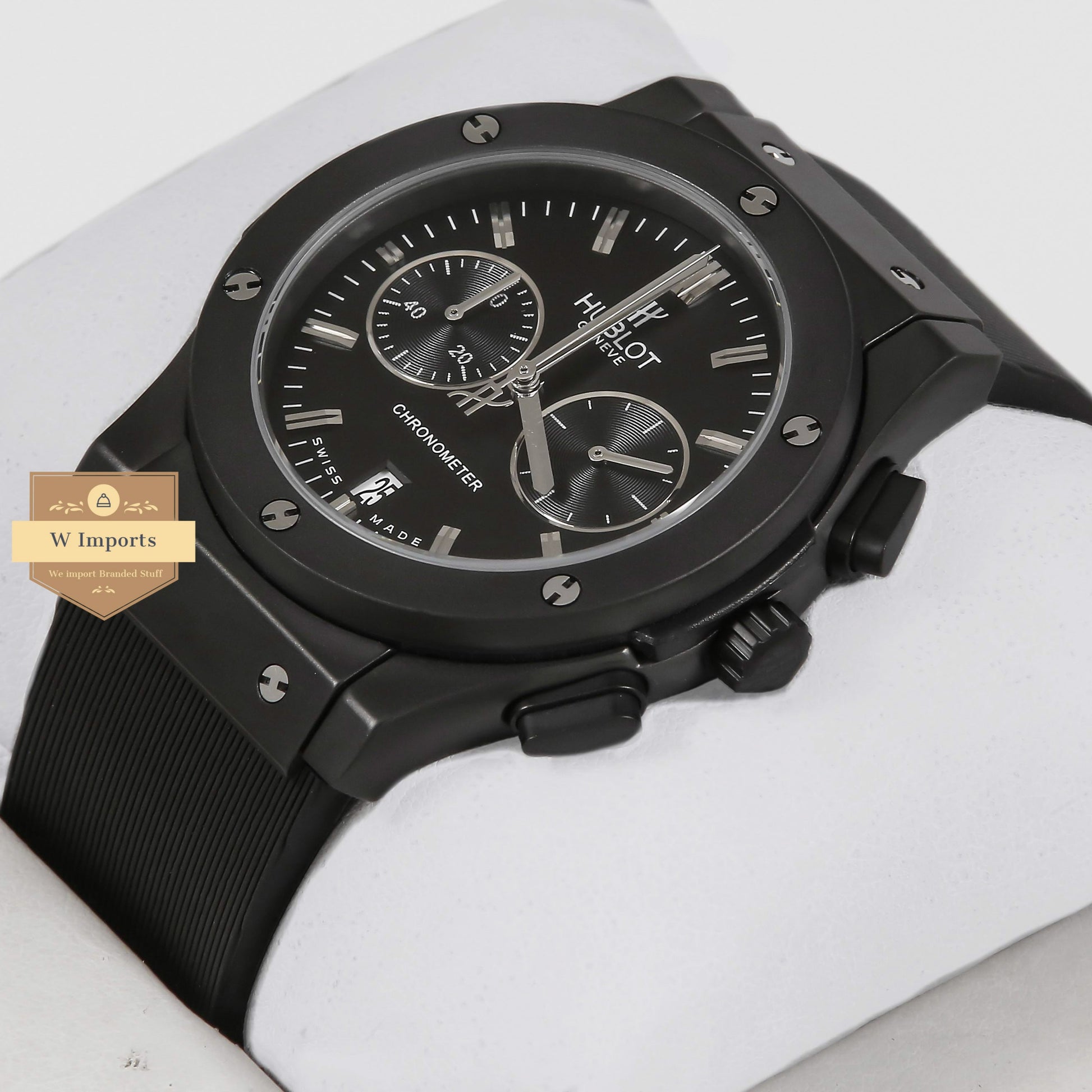 Latest Collection Chronograph Black Case With Black Dial & Black Rubber Strap