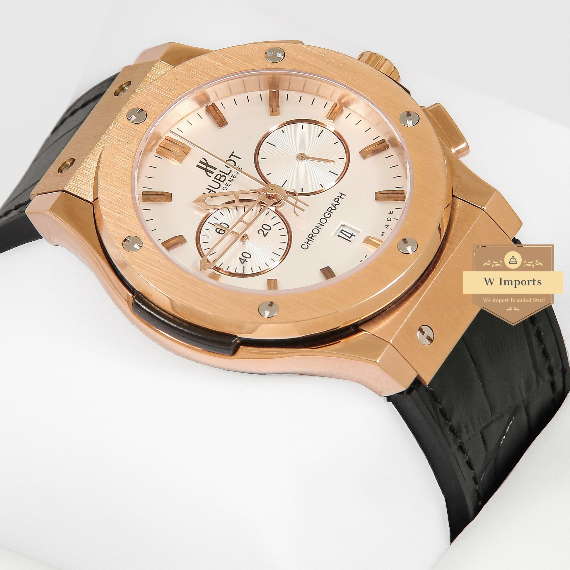Latest Collection Chronograph Rose Gold Case With White Dial & Black Leather Strap