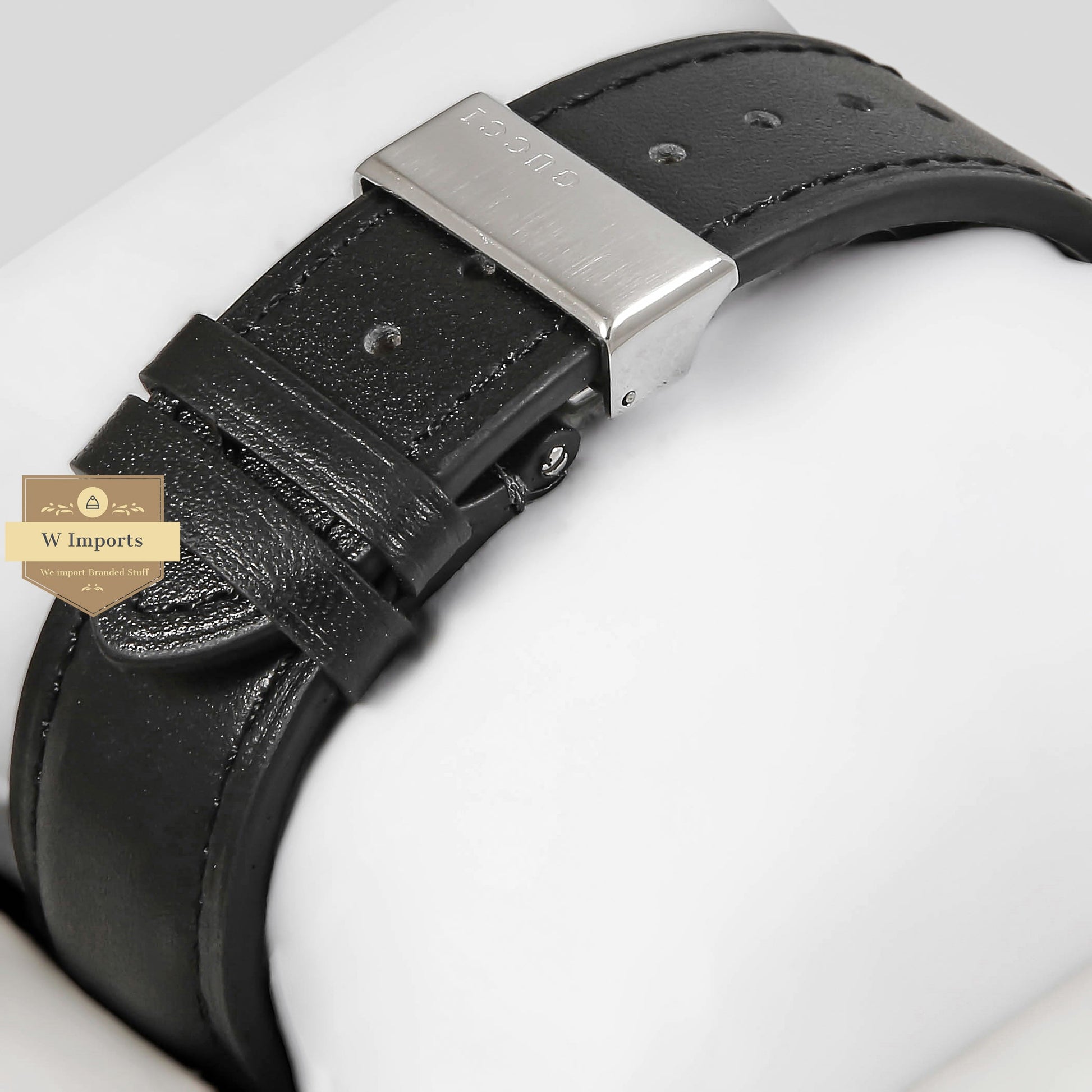LATEST COLLECTION CHRONOGRAPH SILVER CASE WITH BLACK DIAL & LEATHER STRAP