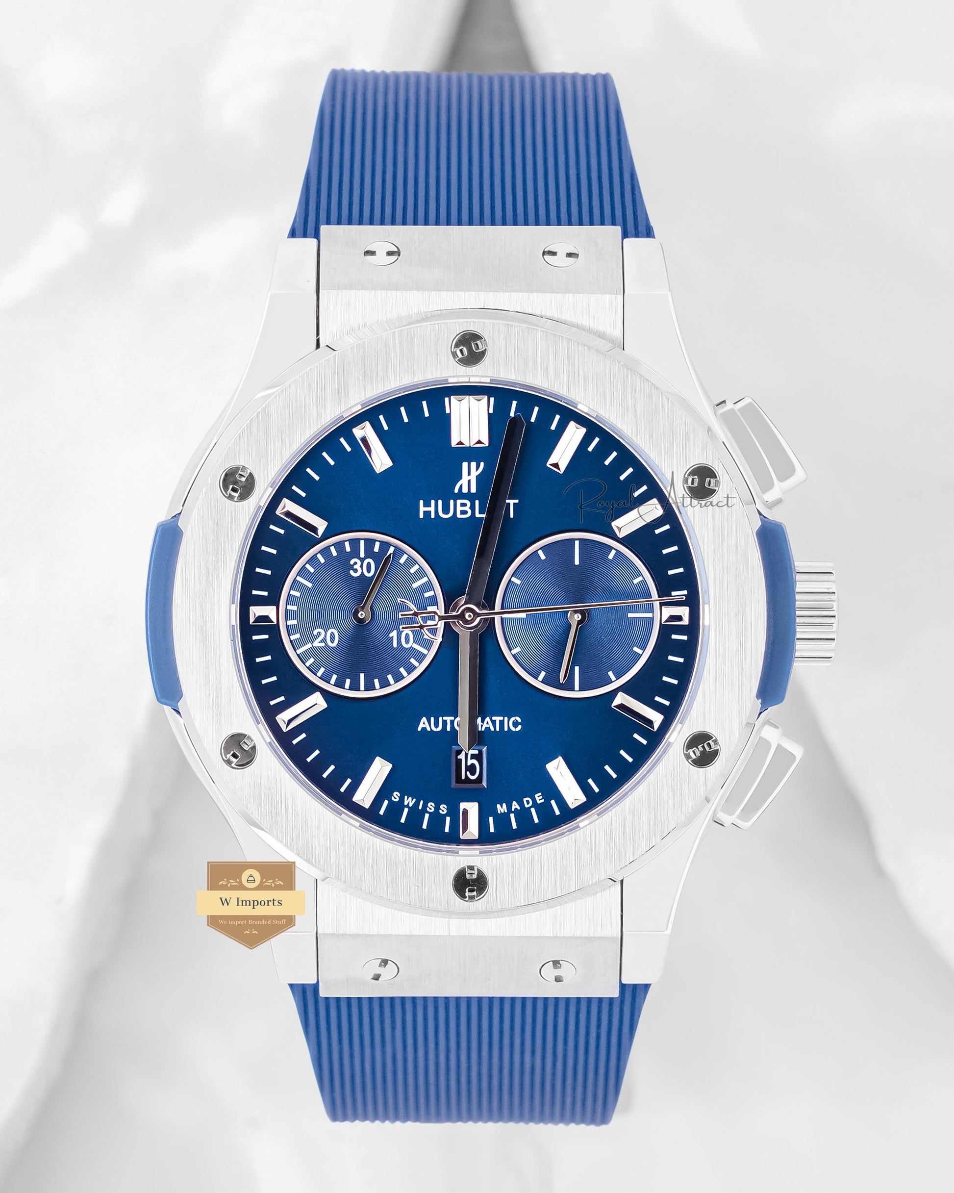 Premium Collection Chronograph Silver Case With Blue Dial And Strap Automatic Watch