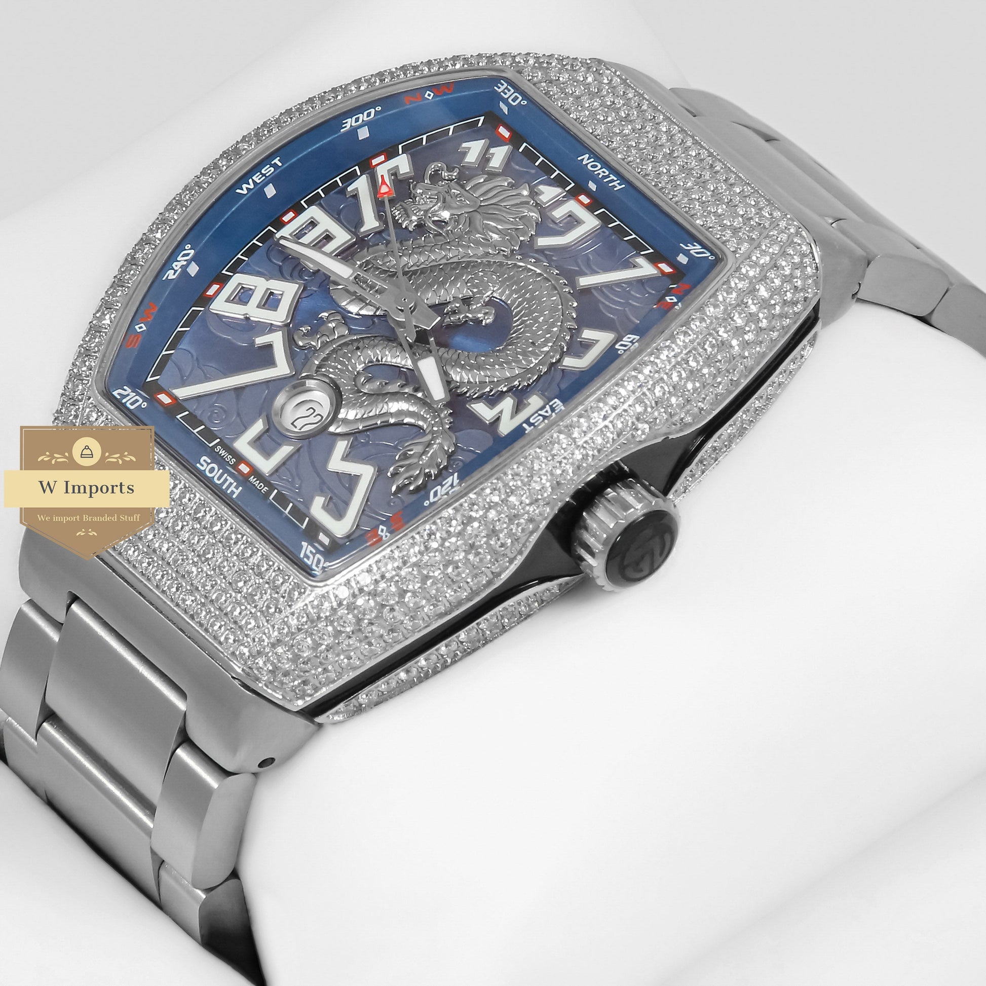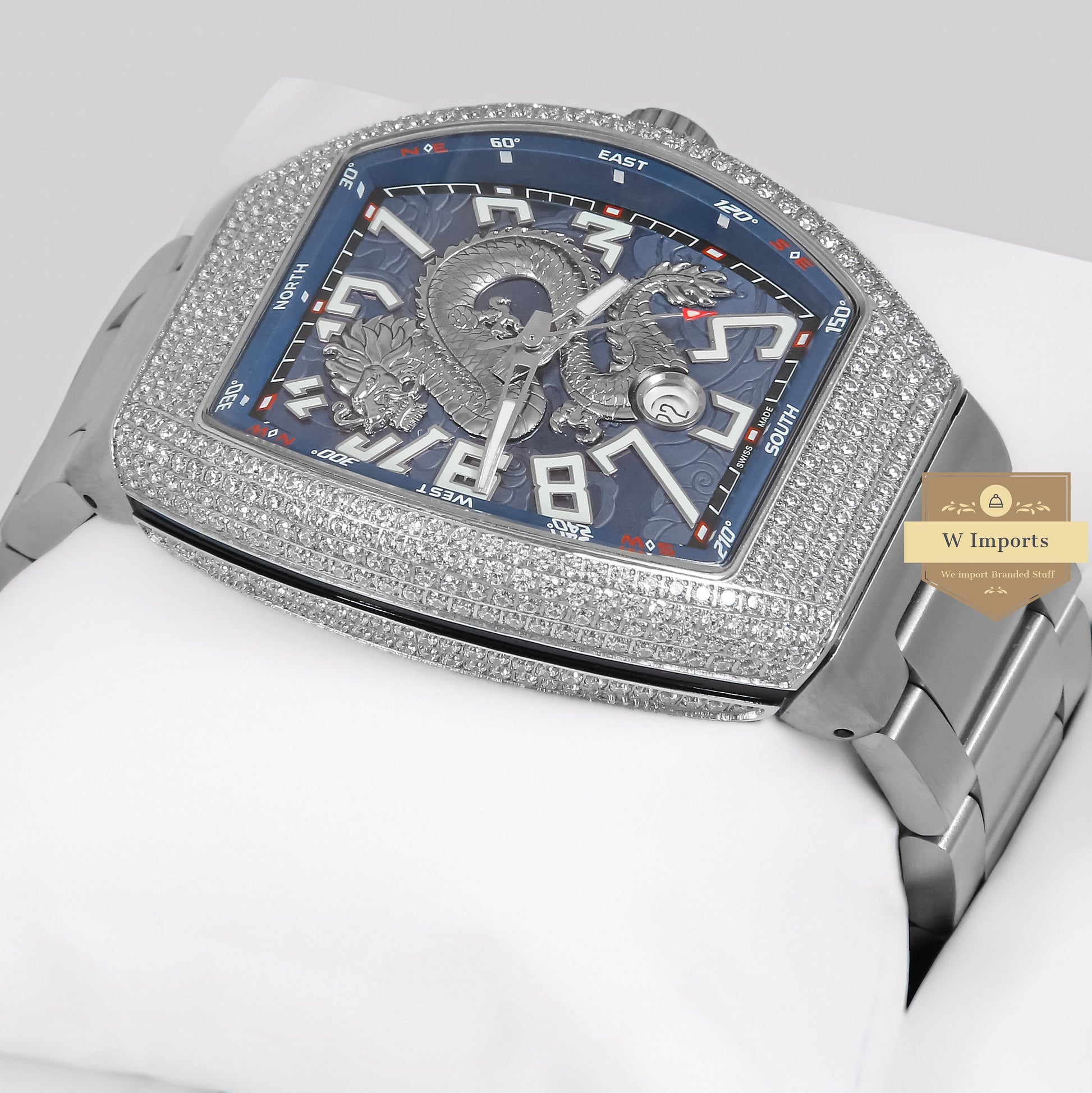 LATEST COLLECTION DRAGON SILVER WITH BLUE DIAL AND STONE CASE