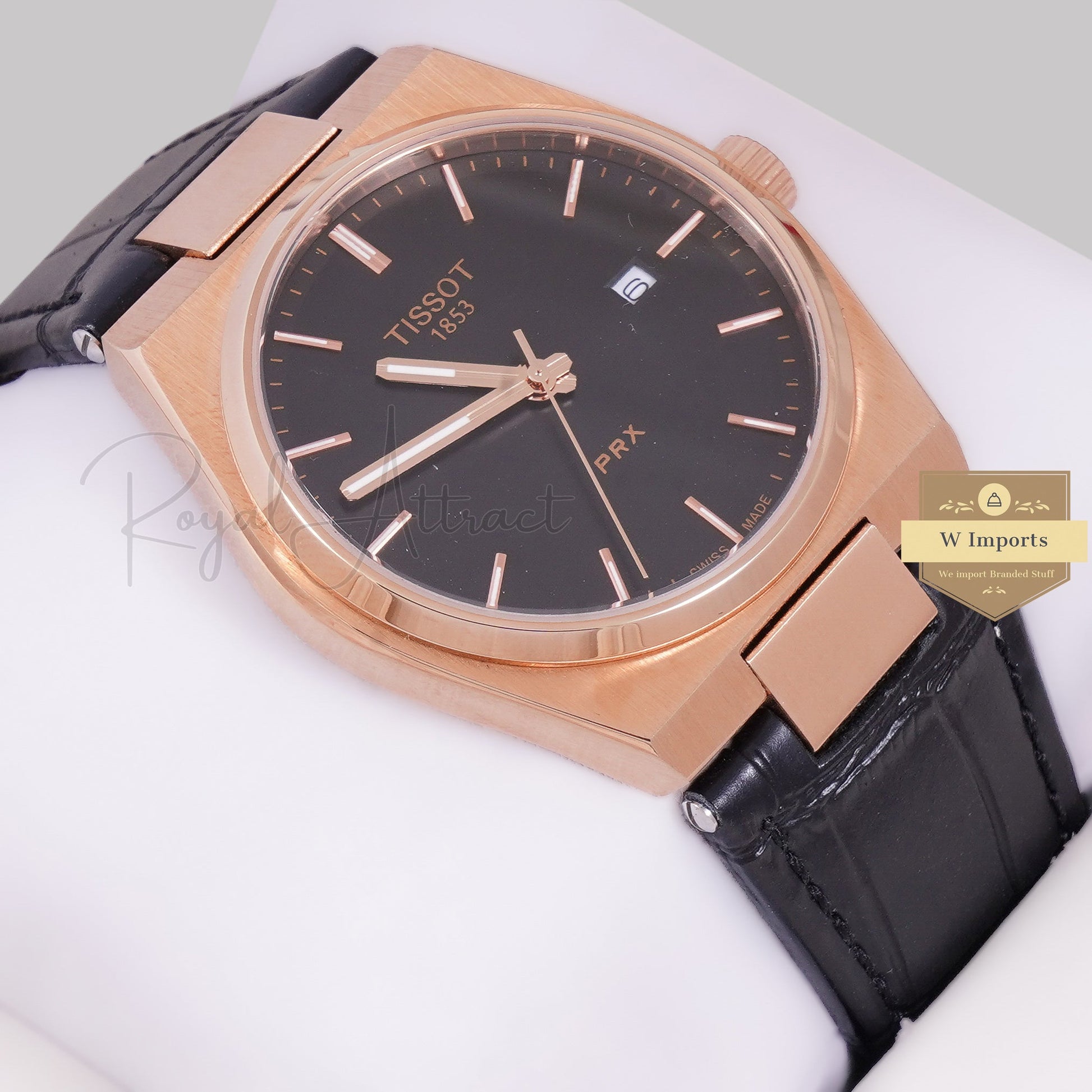 LATEST COLLECTION PRX ROSE GOLD CASE WITH BLACK DIAL & LEATHER STRAP