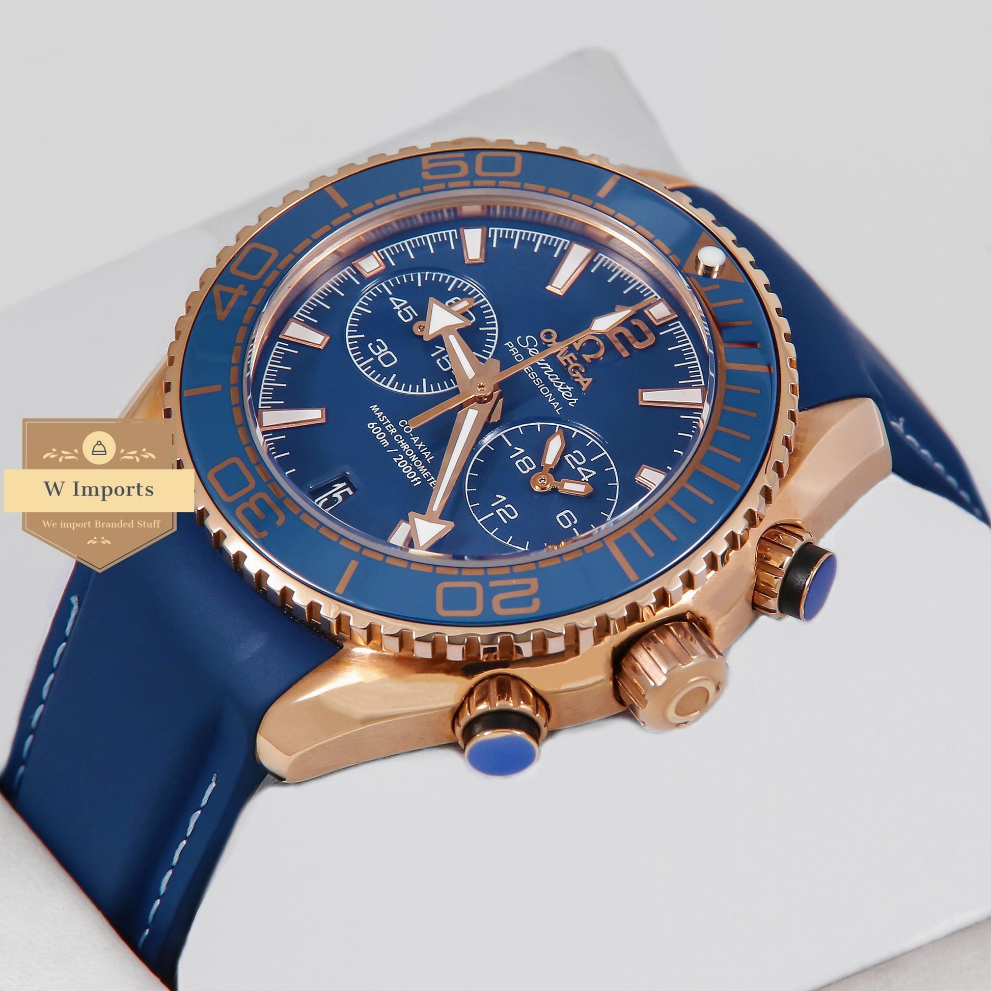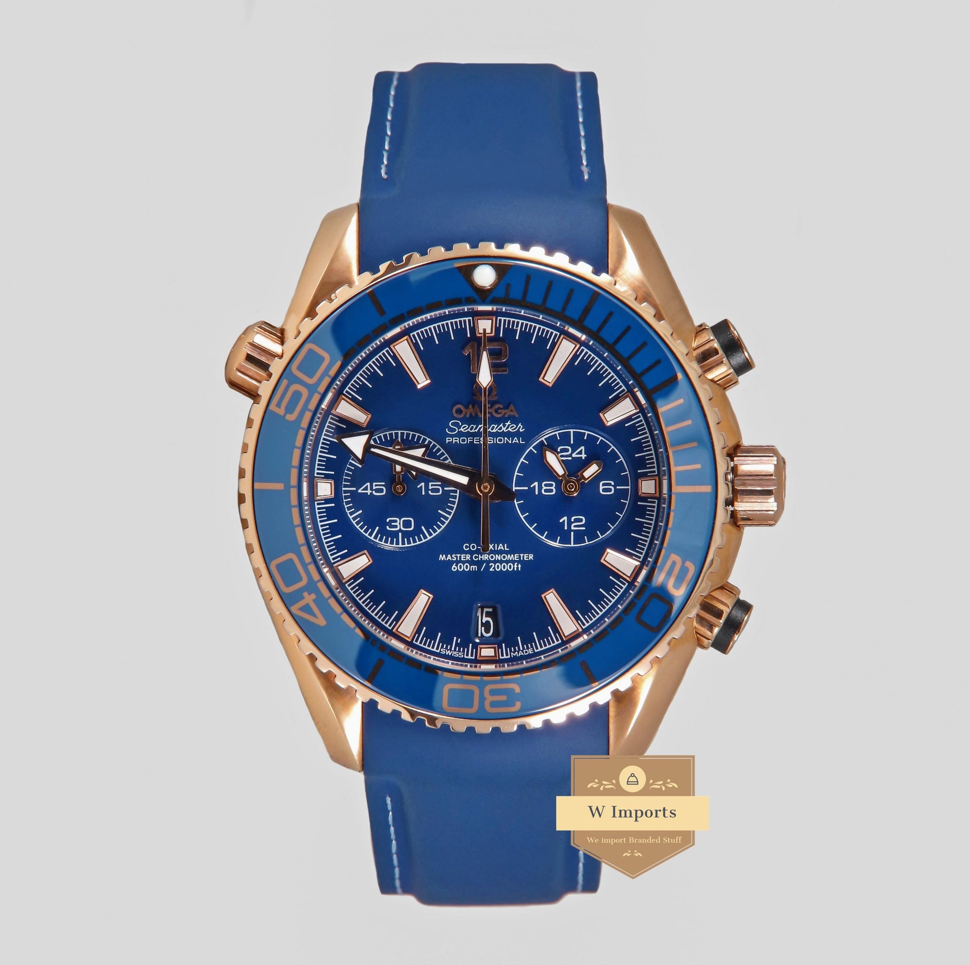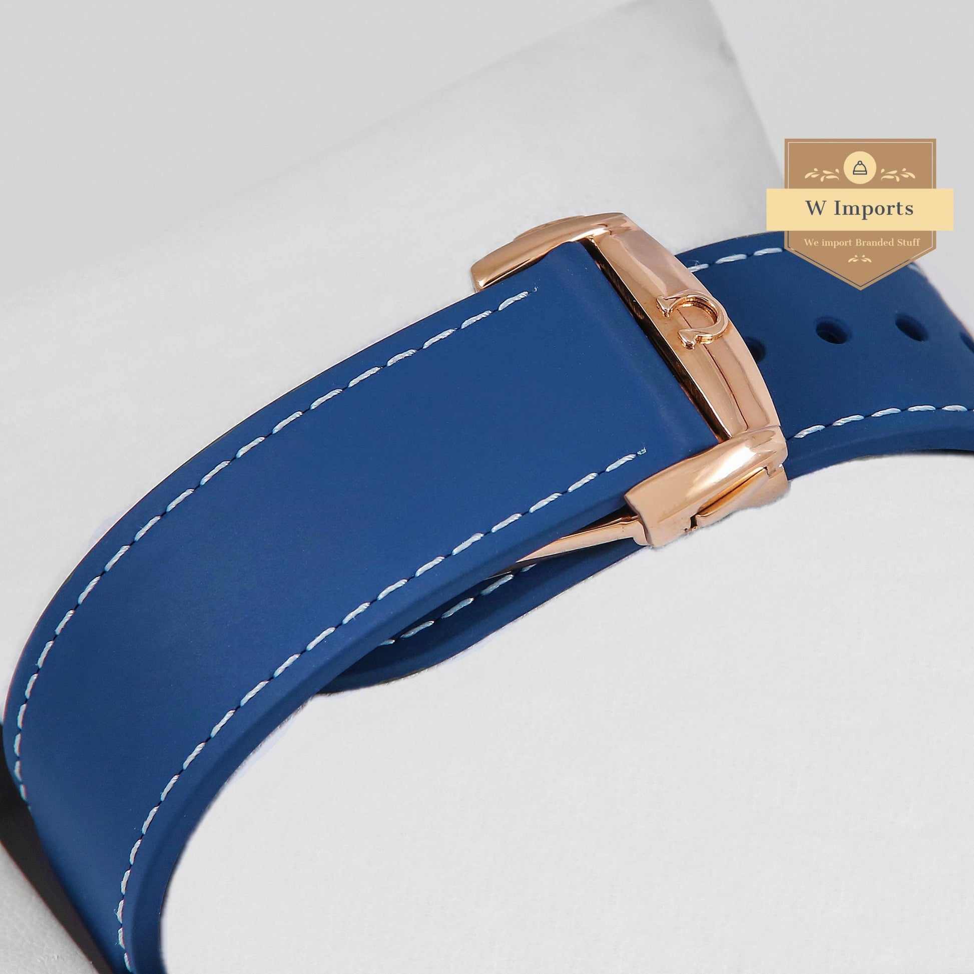 Latest Collection Chronograph Rose Gold Case With Blue Dial & Rubber Strap