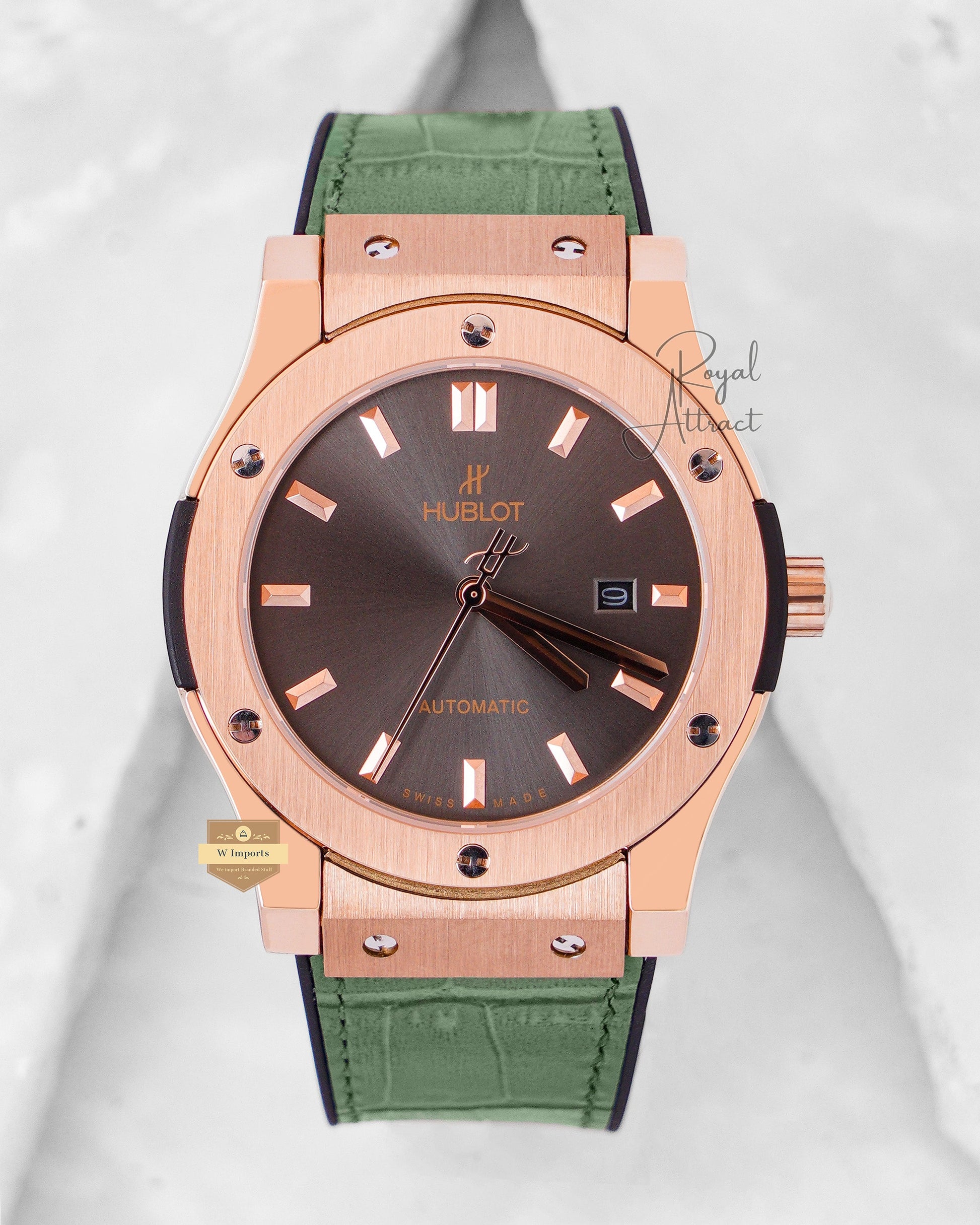 Latest Collection Rose Gold Case With Gray Shaded Dial & Leather Strap
