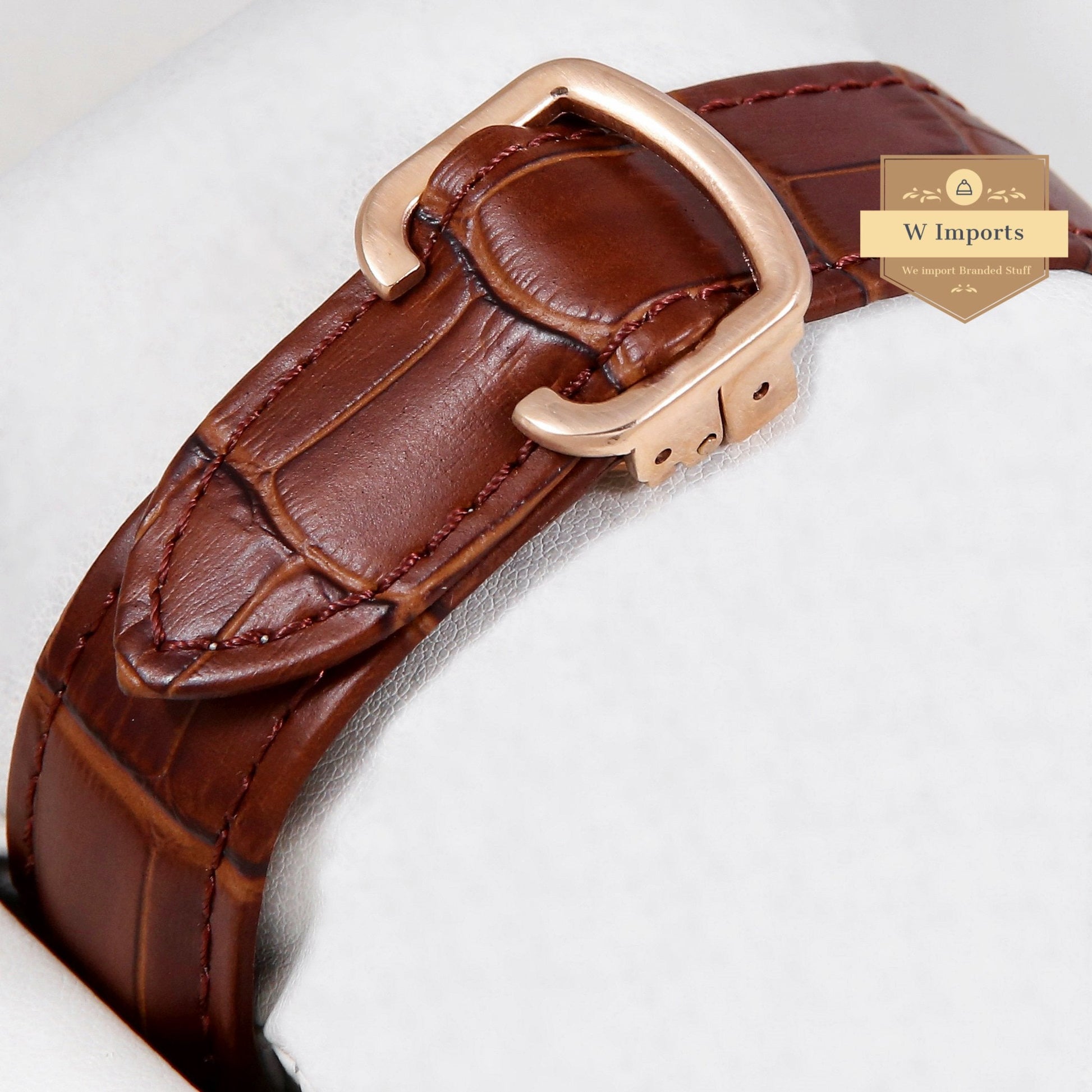 Latest Collection Rose Gold Case With White Dial & Brown Leather Strap