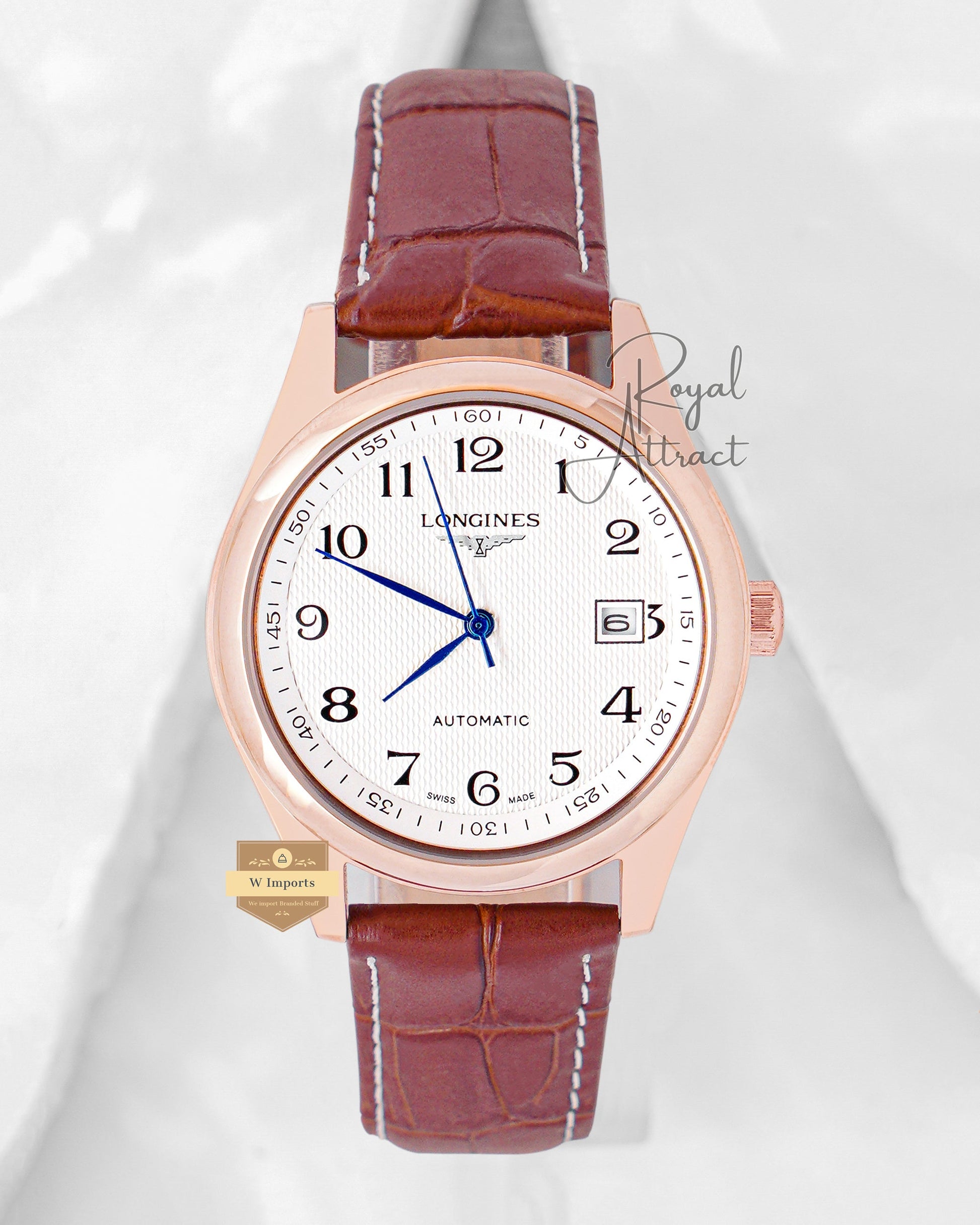 Latest Collection Rose Gold Case With White Dial Leather Strap Automatic Watch