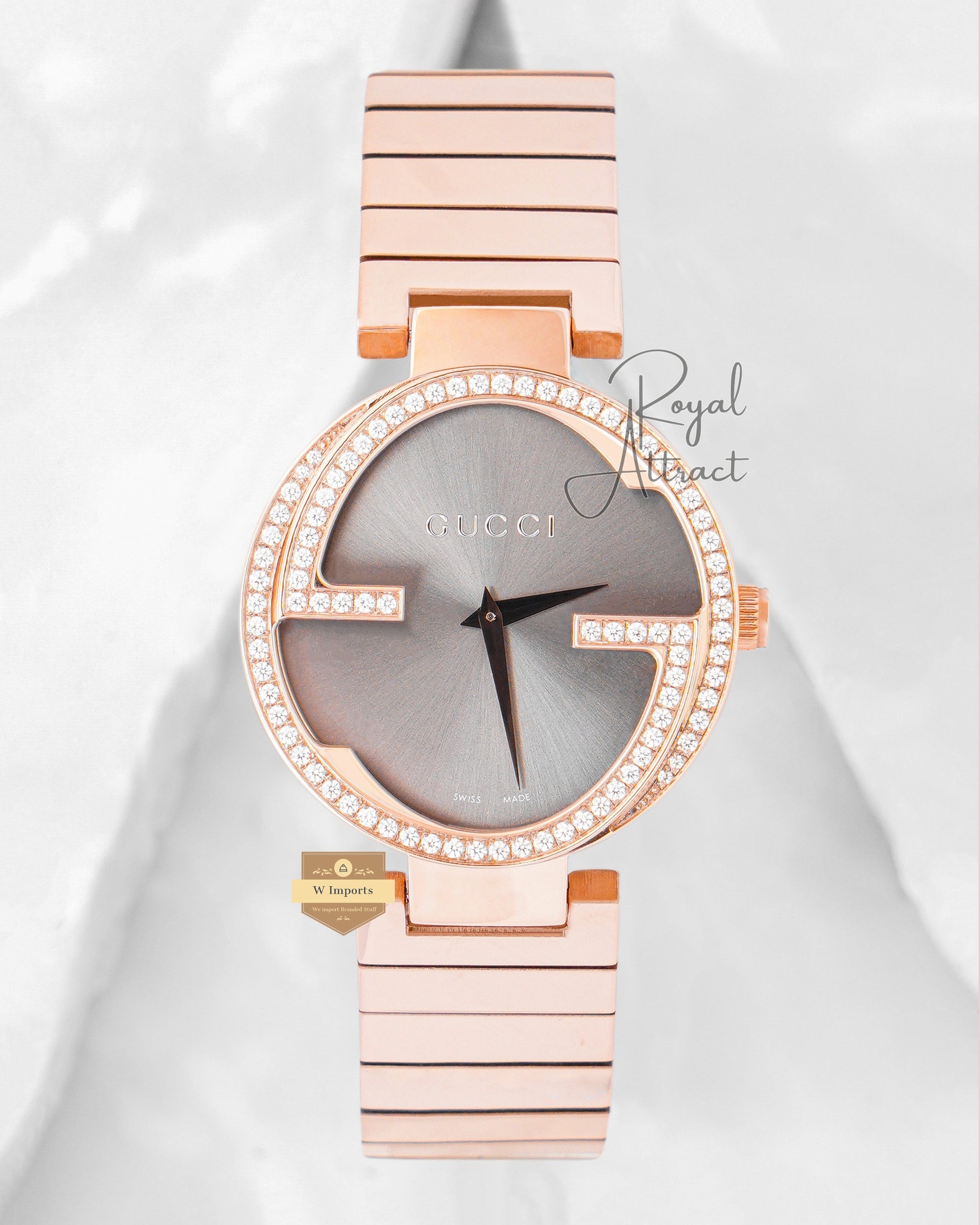 Latest Collection Rose Gold With Gray Dial Stone bezel Unisex Watch