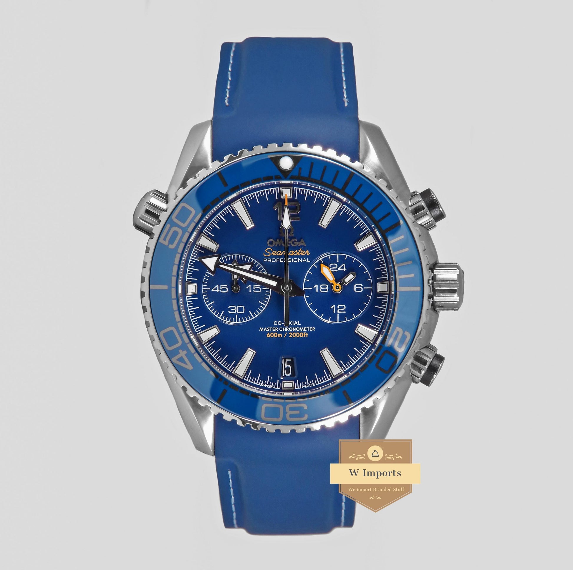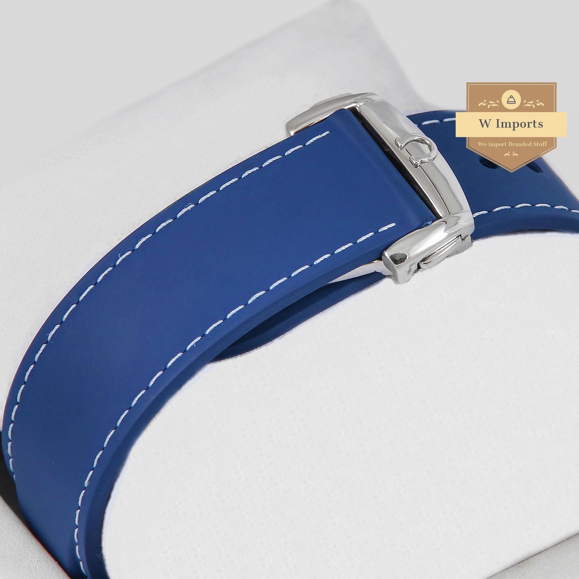 Latest Collection Chronograph Silver Case With Blue Dial & Rubber Strap