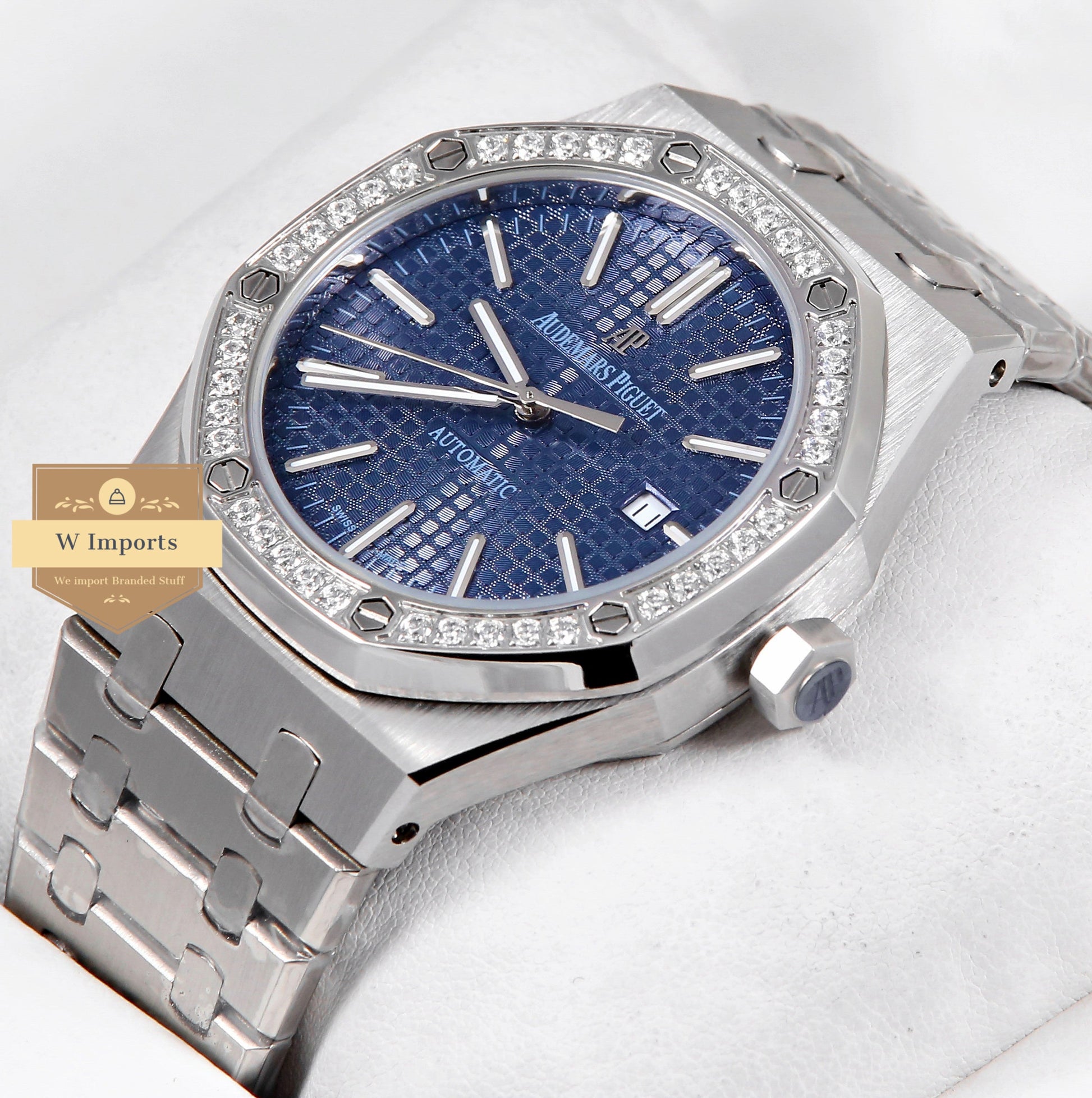 Latest Collection Silver With Blue Dial & Stone Bezel Automatic Watch