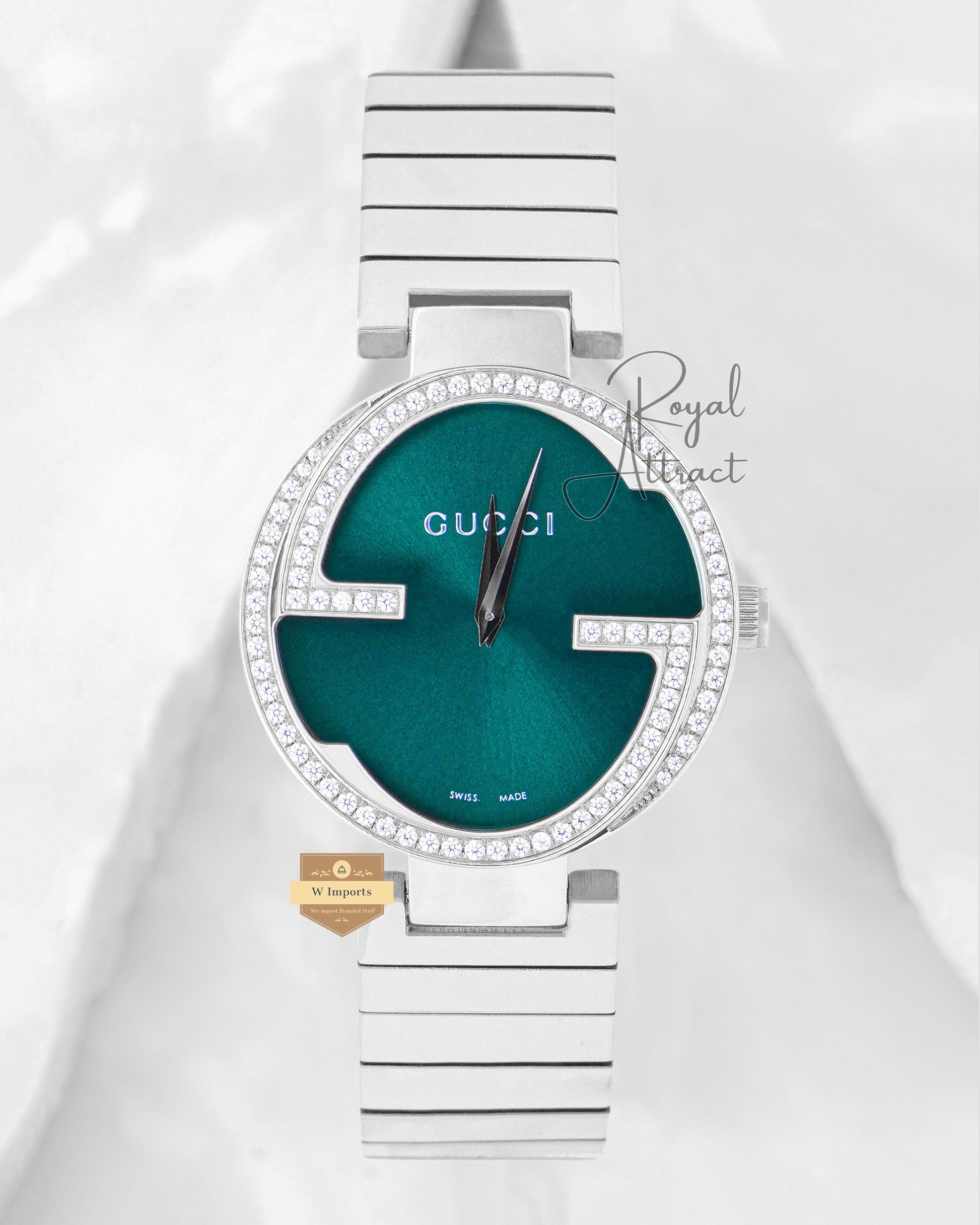 Latest Collection Silver With Sea green Dial Stone bezel Unisex Watch