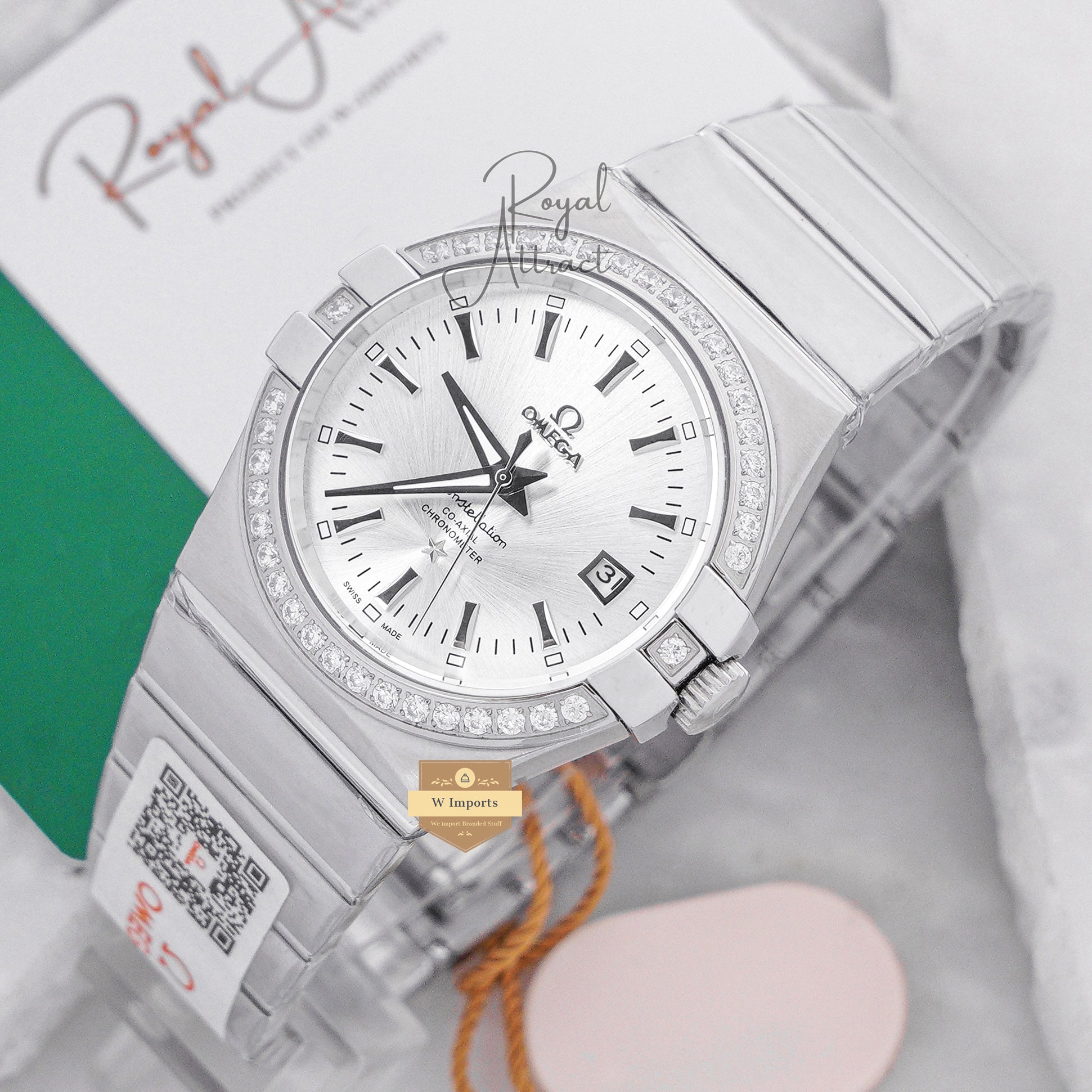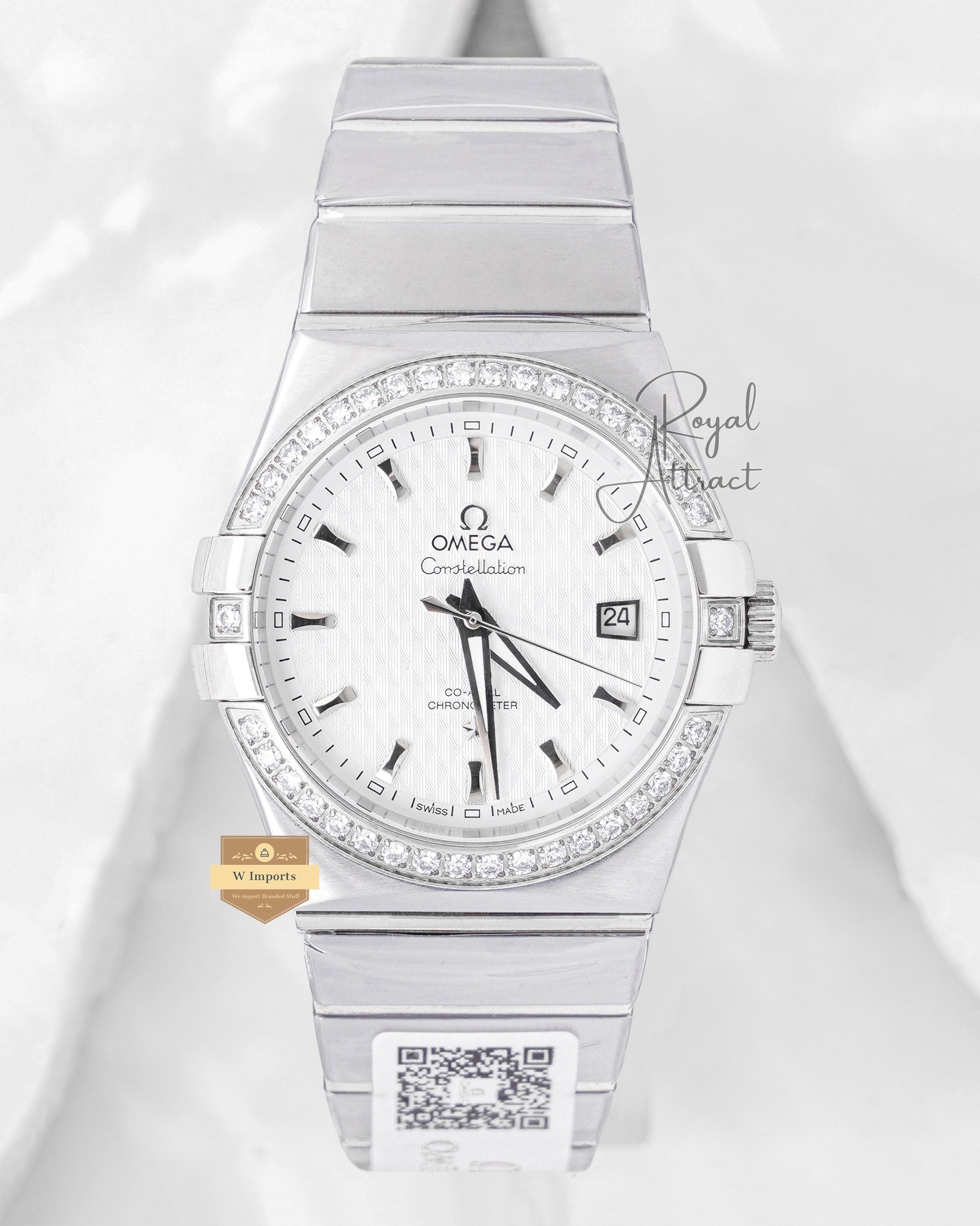 Latest Collection Silver With White Texture Dial Stone Bezel Chain Watch