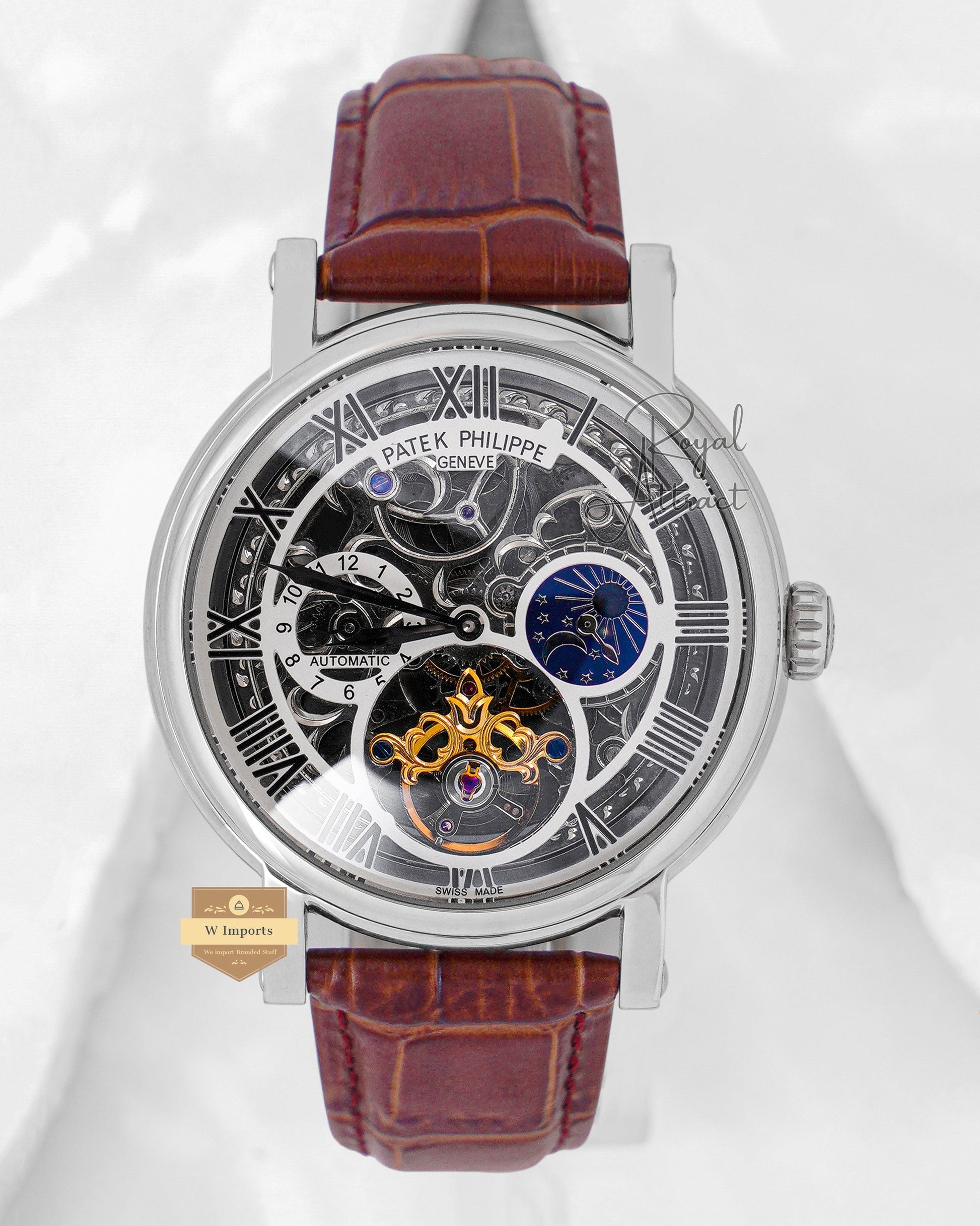 Latest Collection Tourbillon Silver Case With White Skeleton Dial & Leather Strap