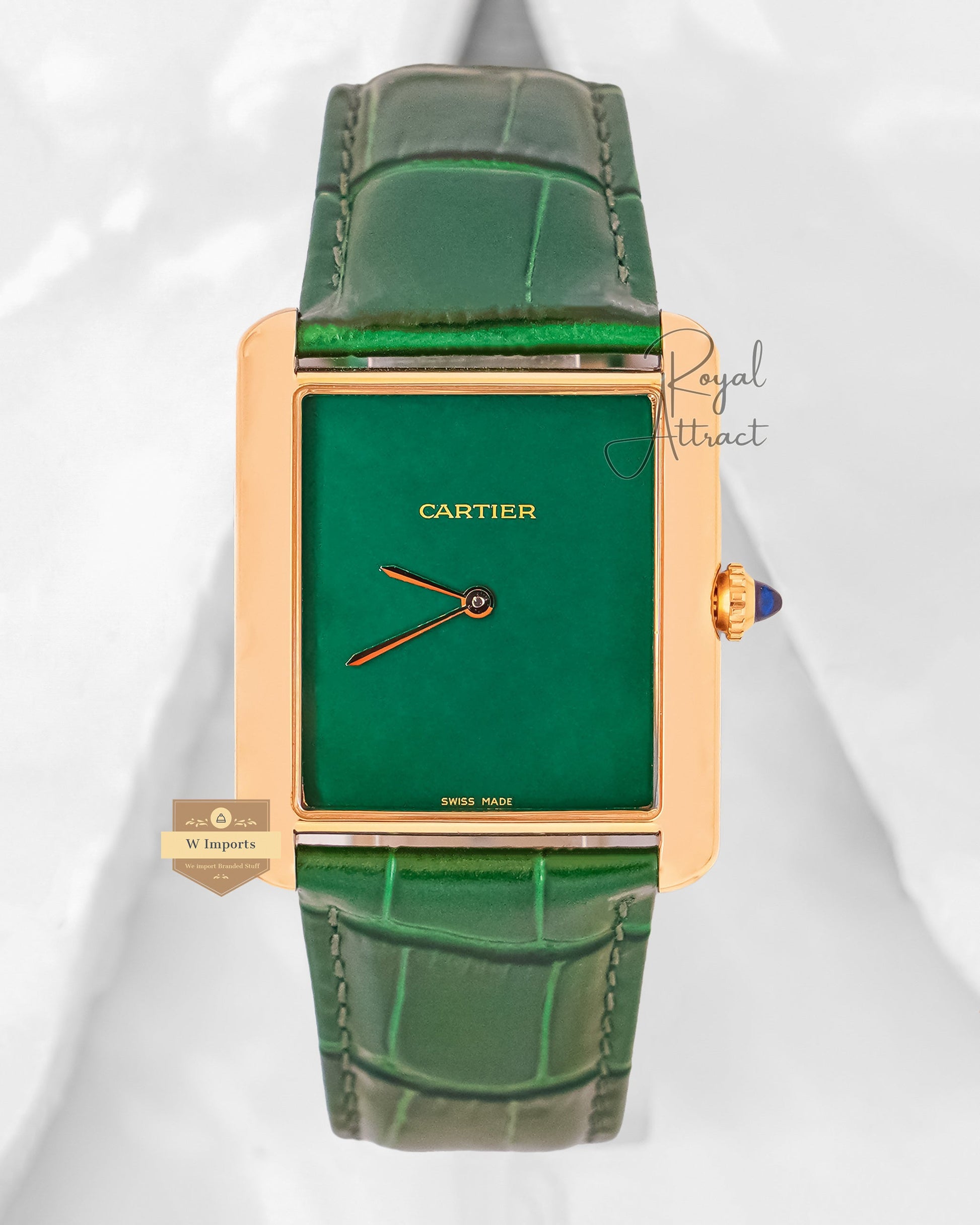 Latest Premium Collection Yellow Gold Case With Green Dial & Leather Strap Watch